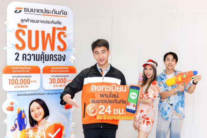 ธนชาตประกันภัยร่วมส่งความสุขมอบความปลอดภัยให้ลูกค้าช่วงเทศกาลสงกรานต์ 2568 ลงทะเบียนรับฟรี! 2 ความคุ้มครอง ทั้ง “ประกันภัยอุบัติเหตุ สุขใจสงกรานต์” ที่ให้ความคุ้มครองสูงสุด 100,000 บาท และ “ประกันภัยอัคคีภัย สุขใจบ้านปลอดภัย” คุ้มครองภัยบ้านสูงสุด 30,000 บาท นานถึง 30 วัน รับสิทธิพิเศษนี้ได้ที่ Line Official Account “ธนชาตประกันภัย” ตั้งแต่วันนี้ – 30 เมษายน 2568