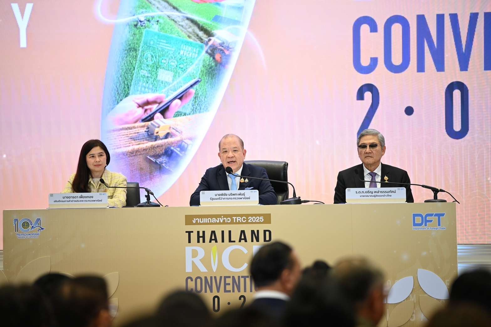 นายพิชัย กล่าวว่า รัฐบาลภายใต้การนำของ นางสาวแพทองธาร ชินวัตร นายกรัฐมนตรี มุ่งเน้นนโยบาย “ตลาดนำ นวัตกรรมเสริม เพิ่มรายได้” เพื่อให้เกษตรกรไทยมีคุณภาพชีวิตที่ดีขึ้น ผลิตสินค้าที่ตอบโจทย์ความต้องการของตลาดทั้งในประเทศและต่างประเทศ เสริมสร้างความเชื่อมั่นในคุณภาพ มาตรฐาน และความปลอดภัยของข้าวไทย พร้อมทั้งยกระดับภาพลักษณ์ในตลาดโลก โดยได้มอบหมายให้กรมการค้าต่างประเทศจัดประชุม TRC 2025 เพื่อเป็นเวทีเชื่อมโยงระหว่างผู้ส่งออก ผู้นำเข้า และเกษตรกรไทย