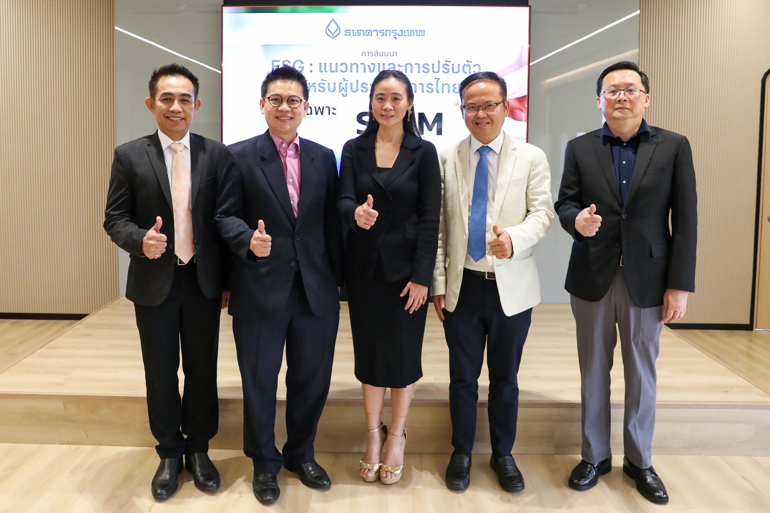 นายสหพล วรรณสุศรี ผู้ช่วยผู้จัดการใหญ่ ผู้อำนวยการลูกค้าธุรกิจรายปลีก นครหลวง (ที่ 2 จากซ้าย) นายกิติพงค์ พร้อมวงค์ ผู้ช่วยผู้จัดการใหญ่ (ที่ 2 จากขวา) นายชนินทร เทพนุภา เจ้าหน้าที่บริหารระดับ Senior Vice President ผู้จัดการความเสี่ยงด้านสินเชื่อ (ขวาสุด) และ นายประพันธ์ ตันมีสุข เจ้าหน้าที่บริหารระดับ Assistant Vice President ผู้จัดการภาค 1 ลูกค้าธุรกิจรายปลีก นครหลวง (ซ้ายสุด) ธนาคารกรุงเทพ จำกัด (มหาชน) ร่วมให้การต้อนรับ ดร.สวนิตย์ บุญญาสุวัฒน์ รองประธานคณะทำงาน BCG Model สภาอุตสาหกรรมแห่งประเทศไทย (กลาง) โอกาสให้เกียรติเป็นวิทยากรงานสัมมนา ในหัวข้อ “ESG-แนวทางและการปรับตัวสำหรับผู้ประกอบการไทย โดยเฉพาะ SME” ซึ่งธนาคารกรุงเทพได้ดำเนินการจัดมาอย่างต่อเนื่อง เพื่อสนับสนุนผู้ประกอบการเอสเอ็มอีไทย (SME) เห็นถึงความสำคัญในการดำเนินธุรกิจตามแนวคิดการพัฒนาอย่างยั่งยืน หรือ ESG (Environmental, Social และ Governance) เตรียมความพร้อมรับมือกับความท้าทายและโอกาสจากกฎระเบียบและมาตรฐานการค้าโลกใหม่