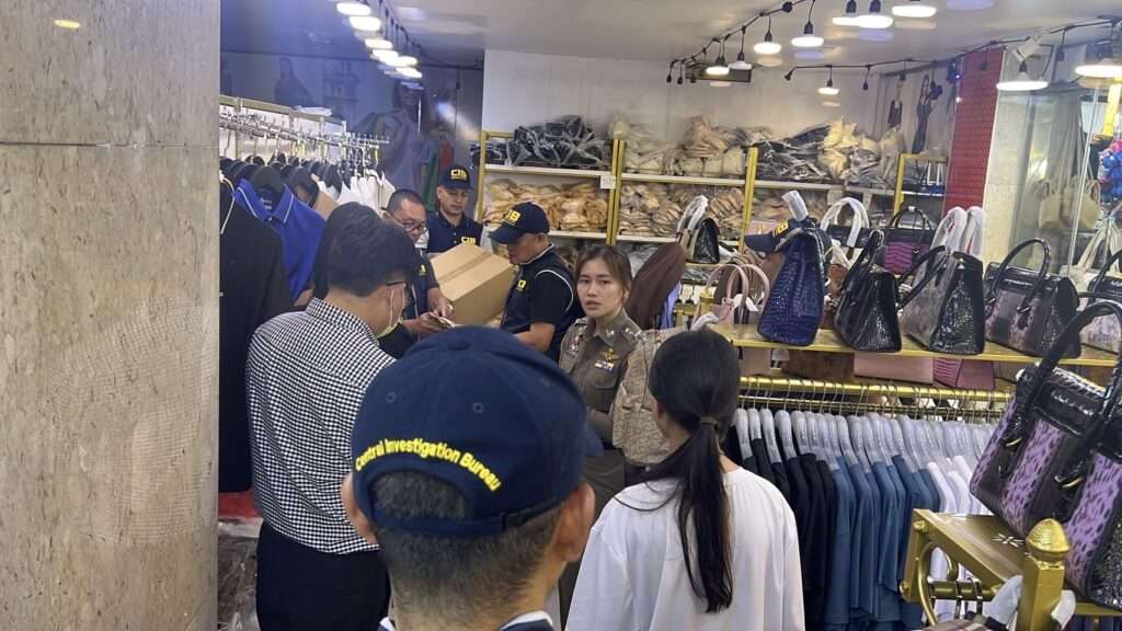 ตำรวจสอบสวนกลาง (CIB) บุกล็อกตัวจีนเทา กลางห้างดังย่านประตูน้ำ หลังพบลอบขายเสื้อผ้า เครื่องประดับแบรนด์หรู และ ขนมปลอม กว่าสองหมื่นชิ้น