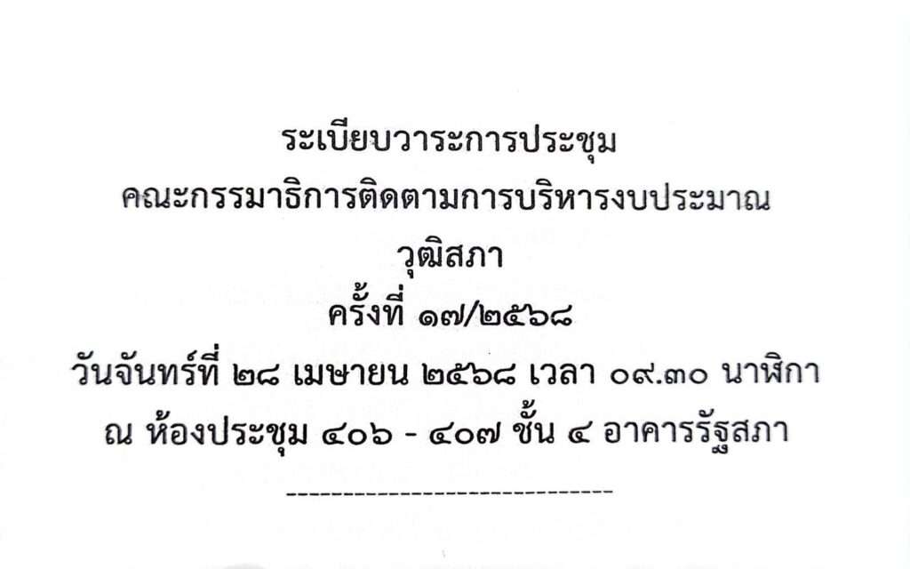 วันนี้ ( 28 เม.ย.68) เวลา 09.30 น.ที่ห้องประชุม 406-407 ชั้น 4 อาคารรัฐสภา พล.ต.อ.อัคราเดช พิมลศรี ที่ปรึกษาพิเศษ ตร. แบะที่ปรึกษาประจำคณะกรรมาธิการติดตามการบริหารงบประมาณวุฒิสภา ร่วมประชุมคณะกรรมาธิการติดตามการบริหารงบประมาณ วุฒิสภา ครั้งที่ 17/2568