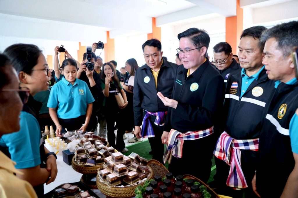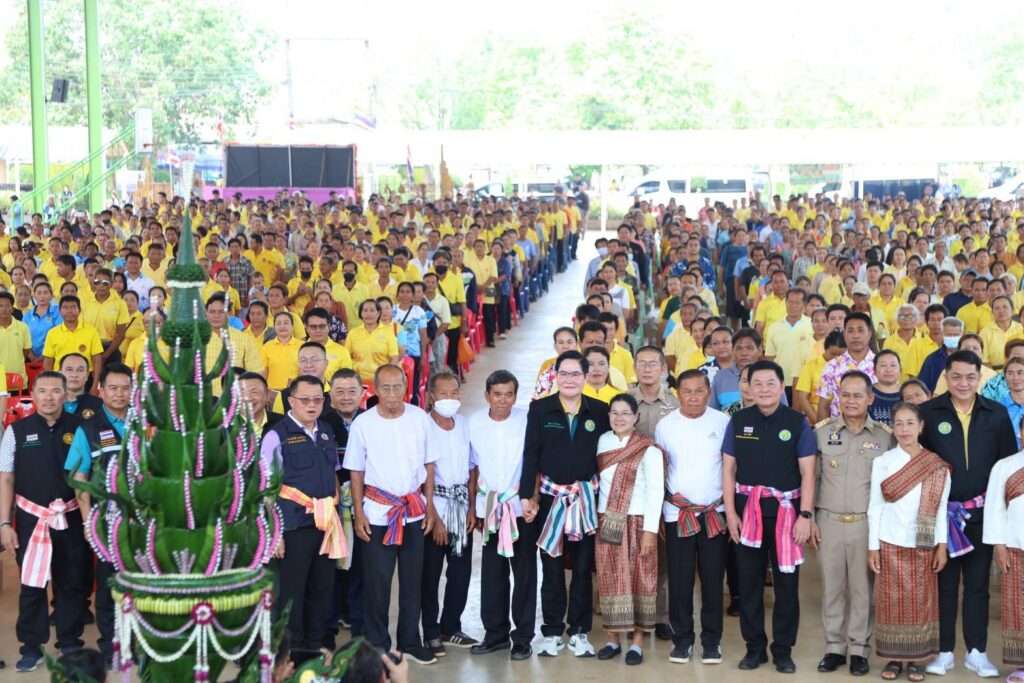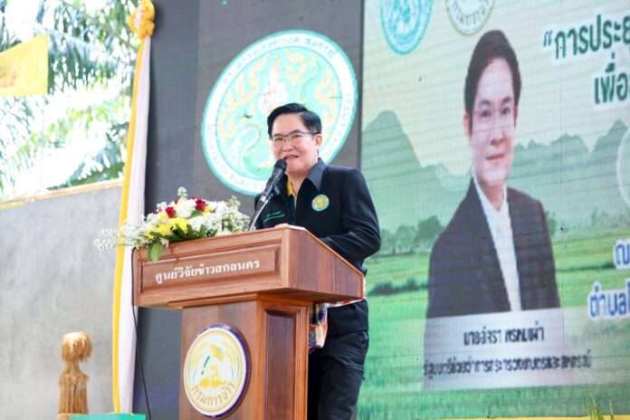 นครพนม – 28 เม.ย. นายอัครา พรหมเผ่า รัฐมนตรีช่วยว่าการกระทรวงเกษตรและสหกรณ์ เป็นประธานเปิดงานถ่ายทอดเทคโนโลยี (Field day) เรื่อง การประยุกต์ใช้เทคโนโลยีการผลิตข้าวอย่างยั่งยืน เพื่อลดการปล่อยก๊าซเรือนกระจก ณ หอประชุมโรงเรียนโพนสวรรค์ราษฎร์พัฒนา ต.โพนสวรรค์ อ.โพนสวรรค์ จ.นครพนม ซึ่งกระทรวงเกษตรฯ โดยกรมการข้าว ได้จัดงานดังกล่าวขึ้น มีวัตถุประสงค์ 1) ถ่ายทอดองค์ความรู้ด้านเทคโนโลยีการผลิตข้าวแบบเปียกสลับแห้งและการจัดการตอซัง ฟางข้าว ด้วยนวัตกรรมเทคโนโลยีปลอดการเผา เพื่อลดการปล่อยก๊าซเรือนกระจก 2) สร้างการรับรู้การปรับตัวของการผลิตข้าวภายใต้การเปลี่ยนแปลงของสภาพภูมิอากาศ 3) ประชาสัมพันธ์ให้เกษตรกรเห็นความสำคัญของการปลูกข้าวแบบเปียกสลับแห้งเพื่อลดการปล่อยก๊าซเรือนกระจก การงดเผาตอซังและฟางข้าว เพื่อลดปัญหาฝุ่นละอองขนาดเล็ก PM 2.5 เพื่อการผลิตข้าวอย่างยั่งยืน และ 4) สร้างเครือข่ายระหว่างกลุ่มเกษตรกร นักวิชาการ และผู้เกี่ยวข้องในการผลิตข้าวให้ปลอดภัย