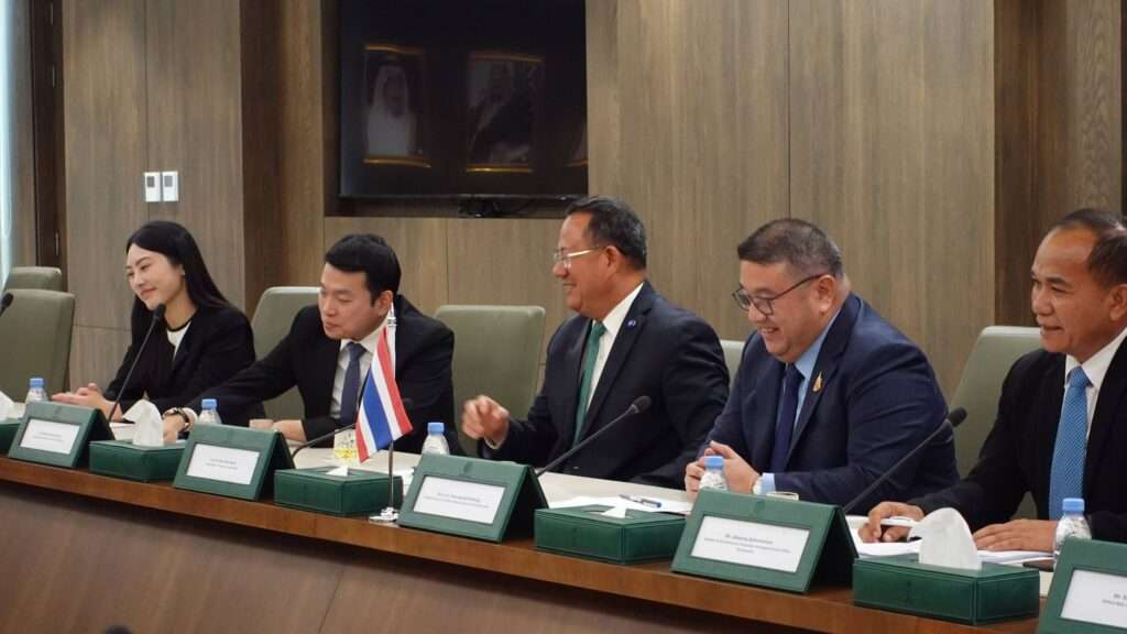 ที่ซาอุดีอาระเบีย วันที่ 30 เมษายน นายธิติวัฐ อดิศรพันธ์กุล รองเลขาธิการนายกรัฐมนตรีฝ่ายการเมือง หัวหน้าคณะจากประเทศไทย พร้อมด้วย พันตำรวจโท วรรณพงษ์ คชรักษ์ เลขาธิการศูนย์อำนวยการบริหารจังหวัดชายแดนภาคใต้ (ศอ.บต.) นาวาเอก จักรพงษ์ อภิมหาธรรม ผู้อำนวยการกองส่งเสริมและสนับสนุนงานพัฒนาฝ่ายพลเรือน นำทัพผู้ประกอบการจากจังหวัดชายแดนภาคใต้ของไทย เดินทางถึงกรุงริยาด พร้อมเข้าพบปะและเยี่ยมเยียน นายดามพ์ บุญธรรม เอกอัครราชทูตไทย ณ กรุงริยาด เพื่อกระชับความสัมพันธ์ระหว่างประเทศในทุกมิติ โดยเฉพาะการส่งเสริมอุตสาหกรรมซอฟต์พาวเวอร์ของไทยในสาขาต่าง ๆ หลังจากนั้น คณะได้เดินทางเข้าพบ นายอับดุลลาซิส อัลซากราม (Abdulaziz Alsakran), รองผู้ว่าการองค์กรการค้าระหว่างประเทศ (the General Authority of Foreign Trade – GAFT) เพื่อแลกเปลี่ยนการค้า การลงทุน และสานสันพันธ์ทางการค้า พร้อมเชื่อมต่อนักลงทุนไทยจับคู่ธุรกิจที่มีประสิทธิภาพ ผลักดันให้เกิดการลงทุนร่วมกันอย่างยั่งยืน ทั้งสาขาอาหารและเครื่องดื่ม เครื่องแต่งกาย และ Health and wellness ณ สํานักงานรองผู้ว่าการ