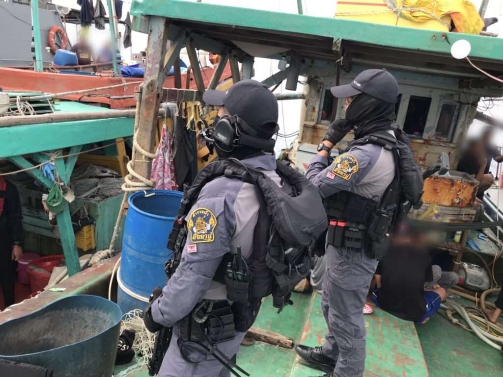 ต่อมาเจ้าหน้าที่ตำรวจน้ำจึงได้นำเรือประทุมวัน 2 (817) ออกตรวจลาดตระเวนในทะเล โดย ว่าที่ พ.ต.อ.นัฐพงค์ ตาแก้ว ผกก.ประจำ บก.รน. หัวหน้าชุดปฎิบัติการ ได้รับแจ้งว่าได้มีเรือประมงไม่ทราบสัญชาติลักลอบเข้ามาทำการประมงในเขตน่านน้ำไทย บริเวณทะเลหน้าจังหวัดนราธิวาส จึงนำเรือปทุมวัน 2 (817 ) ออกลาดตระเวนเพื่อทำการตรวจสอบ ต่อมาเมื่อเวลาประมาณ 18.00 น. ของวันที่ 3 พฤษภาคม 2568 ขณะที่ทำการลาดตระเวน ได้ตรวจพบเรือทั้ง 2 ลำ ที่ต้องสงสัยตามที่ได้รับแจ้ง จึงทำการเข้าตรวจค้นตามยุทธวิธีทางเรือ พร้อมกับแสดงตนว่าเป็นเจ้าหน้าที่ตำรวจน้ำ ขอตรวจเอกสารเรือ คนประจำเรือ แต่ทั้งหมดไม่สามารถฟังและพูดภาษาไทยได้และไม่มีเอกสารใดๆ มาแสดง เจ้าพนักงานตำรวจจึงได้ทำการตรวจสอบเบื้องต้น แต่เนื่องจากสภาพคลื่นลมแรง และเป็นเวลากลางคืน จึงได้มีการควบคุมเรือประมงลำดังกล่าวกลับมายังท่าเทียบเรือ ส.รน.3 กก.7 บก.รน. เพื่อทำการตรวจสอบอย่างละเอียดต่อไป