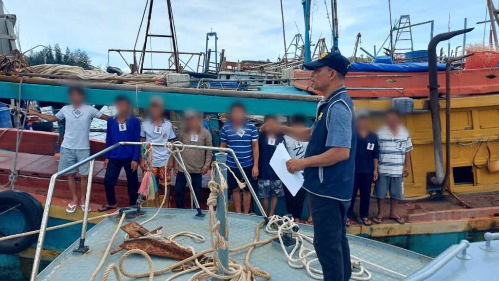 จนเมื่อวันที่ 4 พฤษภาคม 2568 เรือตรวจการณ์หมายเลข 518 ได้นำเรือประมงทั้งสองลำมาจอดเทียบที่ ส.รน.3 กก.7 บก.รน. และจากการตรวจสอบเบื้องต้นปรากฏว่าเรือประมงลำดังกล่าว เป็นเรือประมงสัญชาติเวียดนาม จากนั้นเจ้าหน้าที่จึงได้ติดต่อล่ามสัญชาติเวียดนาม ทำหน้าที่เป็นล่ามแปลภาษา ซึ่งจากการสอบถามทราบว่าทัั้งหมดเป็นชาวเวียดนาม ไม่มีเอกสารประจำตัว และไม่ได้รับอนุญาตให้เข้ามาทำประมงในน่านน้ำไทย เจ้าพนักงานตำรวจชุดจับกุมจึงได้ร่วมกันทำการตรวจยึดสิ่งของดังกล่าวข้างต้นไว้เพื่อเป็นของกลาง และได้แจ้งข้อกล่าวหาแก่บุคคลดังกล่าว จากนั้นจึงนำตัวส่ง พนักงานสอบสวน สภ.เมืองนราธิวาส ดำเนินการตามกฎหมายต่อไป