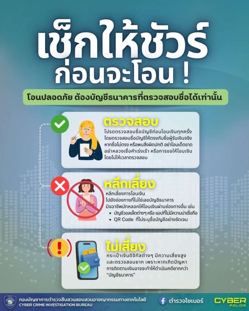 ตำรวจไซเบอร์เตือน อย่ารีบโอน ถ้ายังไม่ได้ตรวจสอบให้ชัดเจน!