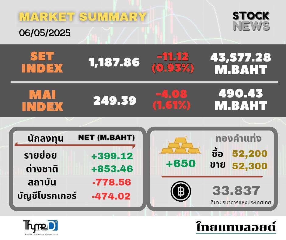 สรุปภาวะการลงทุนในตลาดหลักทรัพย์ ประจำวันที่ 06 พฤษภาคม 2568