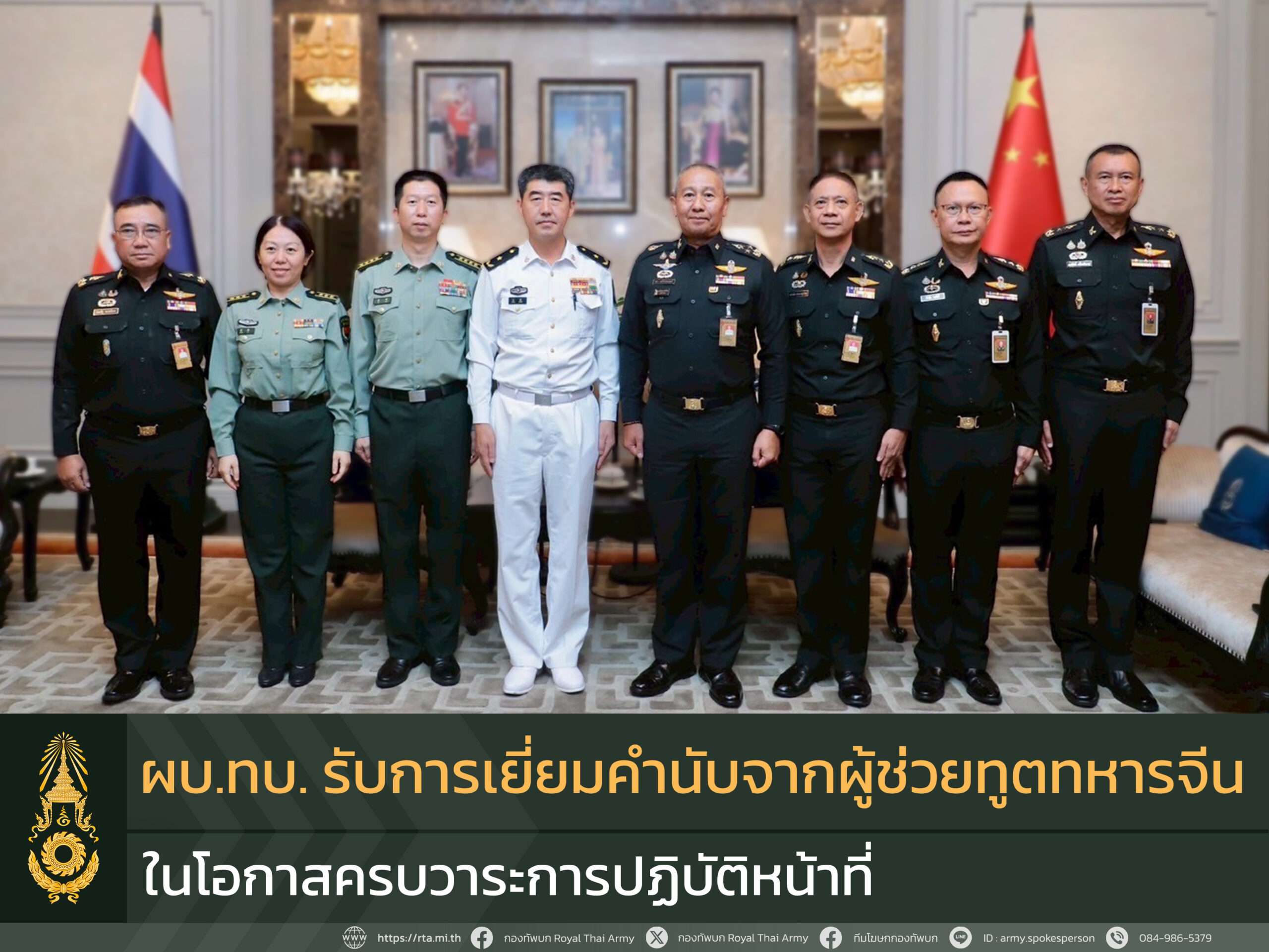 ผบ.ทบ. รับการเยี่ยมคำนับ ผู้ช่วยทูตฝ่ายทหารสถานเอกอัครราชทูตจีนประจำประเทศไทย ในโอกาสครบวาระการปฏิบัติหน้าที่ ชื่นชมการปฏิบัติหน้าที่ สานความร่วมมือทางทหาร