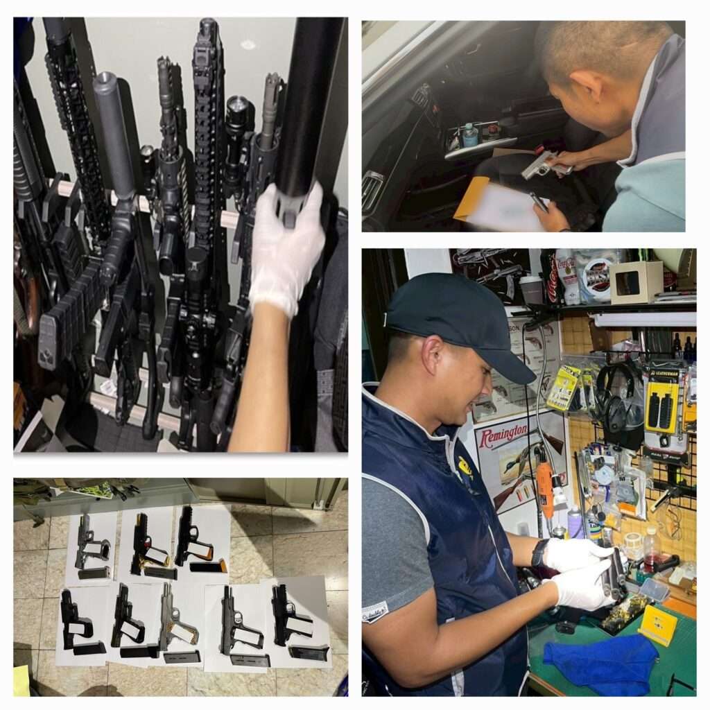 ผลการตรวจค้นพบวัตถุคล้ายเครื่องยิงระเบิกต่อสู้รถถัง, อาวุธปืนและเครื่องกระสุนปืนที่นายทะเบียนไม่สามารถออกใบอนุญาตให้ได้, อาวุธปืนไม่มีทะเบียน และอาวุธปืนและเครื่องกระสุนปืนผิดกฎหมาย ซึ่งตรวจยึดอาวุธปืนรวมจำนวน 20 กระบอก ตรวจยึดเครื่องกระสุนปืน รวมจำนวน 4,155 นัด พร้อมกับยุทธภัณฑ์และชิ้นส่วนอาวุธปืนจำนวนมาก ตลอดจนตรวจยึดพยานหลักฐานที่เกี่ยวข้องกับคดี จากนั้นจึงนำตัวผู้ต้องหาและสิ่งของที่ได้ทำการตรวจยึดส่งพนักงานสอบสวน กองกำกับการ 4 กองบังคับการปราบปราม ดำเนินคดีตามกฎหมายต่อไป