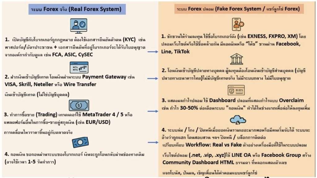 ตารางเปรียบเทียบระบบเทรด Forex จริงและระบบเทรด Forex ปลอม