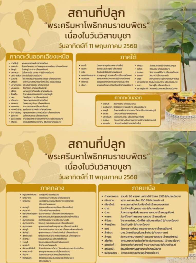 สำหรับพื้นที่ 8 จังหวัดของตำรวจภูธรภาค 2 กำหนดสถานที่ปลูกต้นพระศรีมหาโพธิ์พระราชทาน “พระศรีมหาโพธิทศมราชบพิตร” ดังนี้