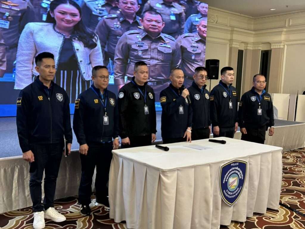ผิวพรรณ ผบช.สอท.,พล.ต.ต.อรรถสิทธิ์ สุดสงวน รอง ผบช.สอท., พล.ต.ต.วิวัฒน์ คำชำนาญ รอง ผบช.สอท., พล.ต.ต.ทินกร รังมาตร์ รอง ผบช.สอท., พล.ต.ต.กฤตัชญ์ บำรุงรัตนยศ ผบก.สอท.4 พร้อมเจ้าหน้าที่ที่เกี่ยวข้องร่วมแถลงข่าว ผบช.สอท. เตรียมเปิดที่ทำการบก.สอท.4 ตั้งฐานที่มั่นปราบโจรออนไลน์ภาคเหนือ เบิกฤกษ์ รวบแอดมิน 3 เว็บพนันใหญ่ เงินหมุนรวมกันกว่า 274 ล้าน พร้อมเดินหน้าโครงการ “ปิดบัญชี ตามล่าม้า คว้าเงินคืน EP.5” รวบเครือข่ายหลอกข้าราชการบำนาญ ตามอายัดทันเกือบ 8 แสน นำคืนผู้เสียหาย