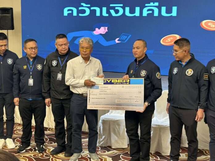 โดยวันนี้ พล.ต.ท.ไตรรงค์ ผิวพรรณ ผบช.สอท.พร้อมเจ้าหน้าที่ตำรวจชุดติดตามคดี จึงได้ร่วมกันนำเงินจำนวน 797,601 บาท มอบคืนให้แก่ผู้เสียหาย ตามโครงการ “MONEY Cash Back ปิดบัญชี ตามล่าม้าคว้าเงินคืน”