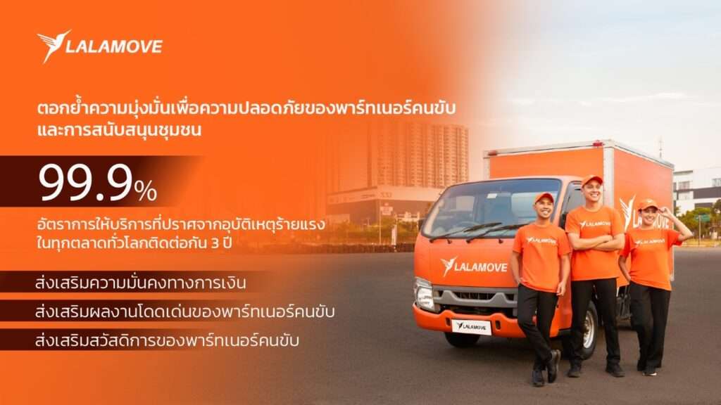นายบิลกล่าวว่า ลาลามูฟยังคงยึดมั่นในความปลอดภัยของพาร์ทเนอร์คนขับ โดยใช้เทคโนโลยี AI และข้อมูลเชิงลึกในการวิเคราะห์ความเสี่ยง เพื่อพัฒนากระบวนการและแนวปฏิบัติด้านความปลอดภัยให้สอดคล้องกับมาตรฐานที่ดีที่สุดในอุตสาหกรรมอย่างต่อเนื่อง โดยลาลามูฟสามารถรักษาอัตราการให้บริการที่ปราศจากอุบัติเหตุร้ายแรงได้ถึง 99.9% ครอบคลุมทุกตลาดติดต่อกันเป็นเวลา 3 ปี สำหรับลาลามูฟ ประเทศไทย ได้มีการจัดโครงการเพื่อส่งเสริมสวัสดิภาพให้กับพาร์ทเนอร์คนขับ และเสริมสร้างความแข็งแกร่งให้กับชุมชนอย่างต่อเนื่อง อาทิ โครงการ ‘Ride for Chance, Ride for Change’ ร่วมกับ บ้านปู เน็กซ์ ส่งเสริมแรงงานผู้พิการเข้าสู่ระบบขนส่งลาลามูฟ สนับสนุนยานพาหนะในการขนส่ง พร้อมจัดจัดการฝึกอบรมทักษะให้ผู้พิการอย่างรอบด้าน โครงการ Lala Mother’s Driver Day สนับสนุนการตรวจสุขภาพครอบคลุม 14 รายการ ให้แก่เหล่าคุณแม่พาร์ทเนอร์คนขับ ในช่วงวันแม่แห่งชาติ