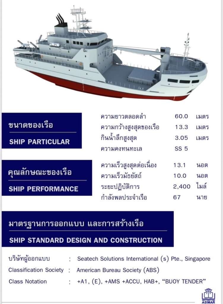 นายกสมาคมภริยาทหารเรือ กล่าวเชิญมิ่งขวัญและมงคลสู่เรือ / เจิมปิดทองคล้องพวงมาลัย ผูกผ้าสามสี โปรยข้าวตอกดอกไม้ และประพรมน้ำพระพุทธมนต์แผ่นป้ายชื่อเรือตามลำดับ เวลา 13.39 น. พิธีปล่อยเรือปฏิบัติการอุทกศาสตร์ลงน้ำ โครงการจัดหาเรือปฏิบัติการอุทกศาสตร์ (Hydrographic Vessel )เป็นการจัดหาเรือปฏิบัติการอุทกศาสตร์จำนวน 1 ลำ เพื่อทดแทนเรือหลวงสุริยะ ที่จะปลดระวางประจำการ เพื่อให้กองทัพเรือยังคงมีขีดความสามารถในการตรวจซ่อมเครื่องหมายทางเรือในน่านน้ำไทย สนับสนุนการช่วยเหลือผู้ประสบภัยทางทะเลตลอดจนการส่งกำลังบำรุงให้แก่หน่วยงานต่าง ๆ ของกองทัพเรือที่ตั้งอยู่บริเวณชายฝั่งทะเลหรือในทะเลและสนับสนุนกิจอื่นๆ ตามที่รับการร้องขอตามความเหมาะสม