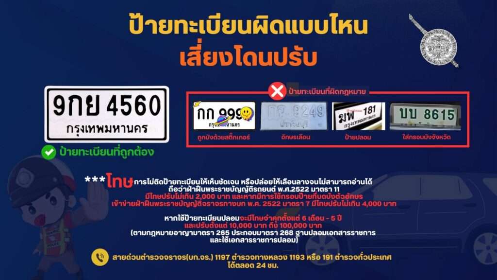 ศูนย์บริหารงานจราจร สำนักงานตำรวจแห่งชาติ เตือนผู้ใช้ป้ายทะเบียนรถผิดกฎหมาย ดัดแปลงป้าย เสี่ยงโทษหนัก