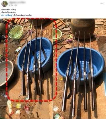 สืบเนื่องจากสายตรวจไซเบอร์ กก.1 บก.สอท.3 ได้ลาดตระเวนตรวจสอบสื่อสังคมออนไลน์ พบผู้ใช้ Facebook จำนวน 2 รายโพสต์ภาพอาวุธปืน โดยบัญชีชื่อ “ปฐมพร ภารไสว” (มีผู้ติดตามประมาณ 1,200 คน) ได้โพสต์ภาพปืนยาวไทยประดิษฐ์ 4 กระบอก วางในกะละมังสีน้ำเงิน พร้อมข้อความ “อาบแดด อุ่น ๆ ขัดน้ำมัน เบา ๆ #กาฬสินธุ์มือใหม่หัดสะสมคับ”