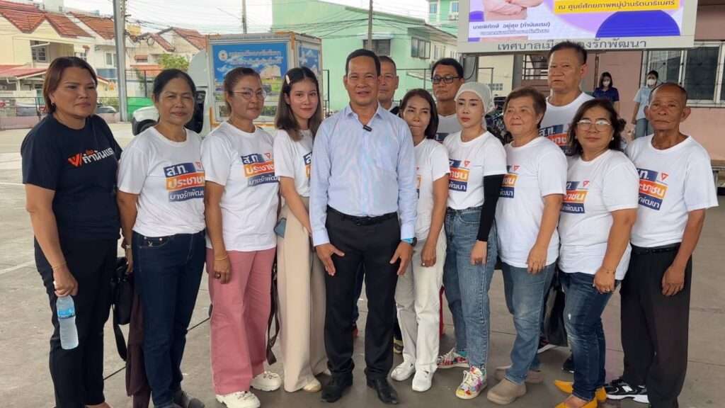 เมื่อวันที่ 18 พฤษภาคม 2568 ที่ศูนย์ศักยภาพหมู่บ้านรัตนาธิเบศร์ ต.บางรักพัฒนา อ.บางบัวทอง จ.นนทบุรี นายพิทักษ์ อยู่สุข นายกเทศมนตรีเมืองบางรักพัฒนา นายไพโรจน์ ทองเอี่ยม รองนายกเทศมนตรีเมืองบางรักพัฒนา น.ส.นิดา สินประเสริฐรัตน์ ปลัดเทศบาลเมืองบางรักพัฒนา พร้อมด้วยหัวหน้าส่วนราชการ และทีมสมาชิกสภาเทศบาลเมืองบางรักพัฒนา ได้ลงพื้นที่พบปะพี่น้องประชาชนในเขตหมู่บ้านรัตนาธิเบศร์ ต.บางรักพัฒนา อ.บางบัวทอง จ.นนทบุรี กับโครงการ “นายกสัญจรพบประชาชน” ร่วมพูดคุย แนวทางการแก้ปัญหาน้ำท่วมในชุมชน การจัดเก็บค่าธรรมเนียมขยะ แลกเปลี่ยนความคิดเห็นในเรื่องอื่นๆ