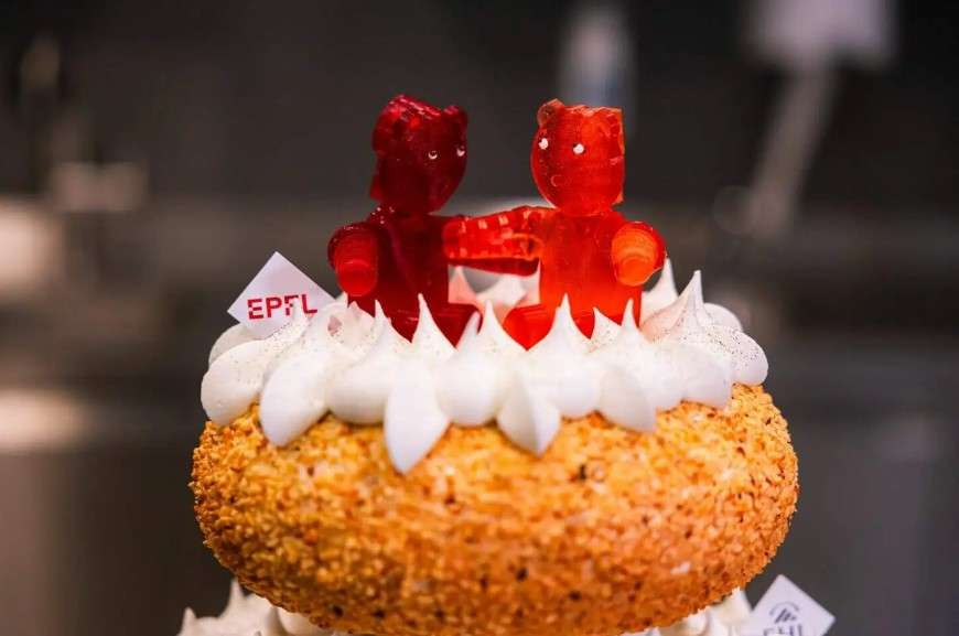 หุ่นยนต์เค้ก สุดล้ำ ที่ผสานเทคโนโลยีหุ่นยนต์และศาสตร์การทำอาหารเข้าด้วยกันเค้กหลายชั้นนี้ตกแต่งด้วยหุ่นยนต์ขนาดเล็กที่สามารถกินได้ และแบตเตอรี่แบบชาร์จไฟชนิดแรกของโลกที่สามารถกินได้อย่างปลอดภัย