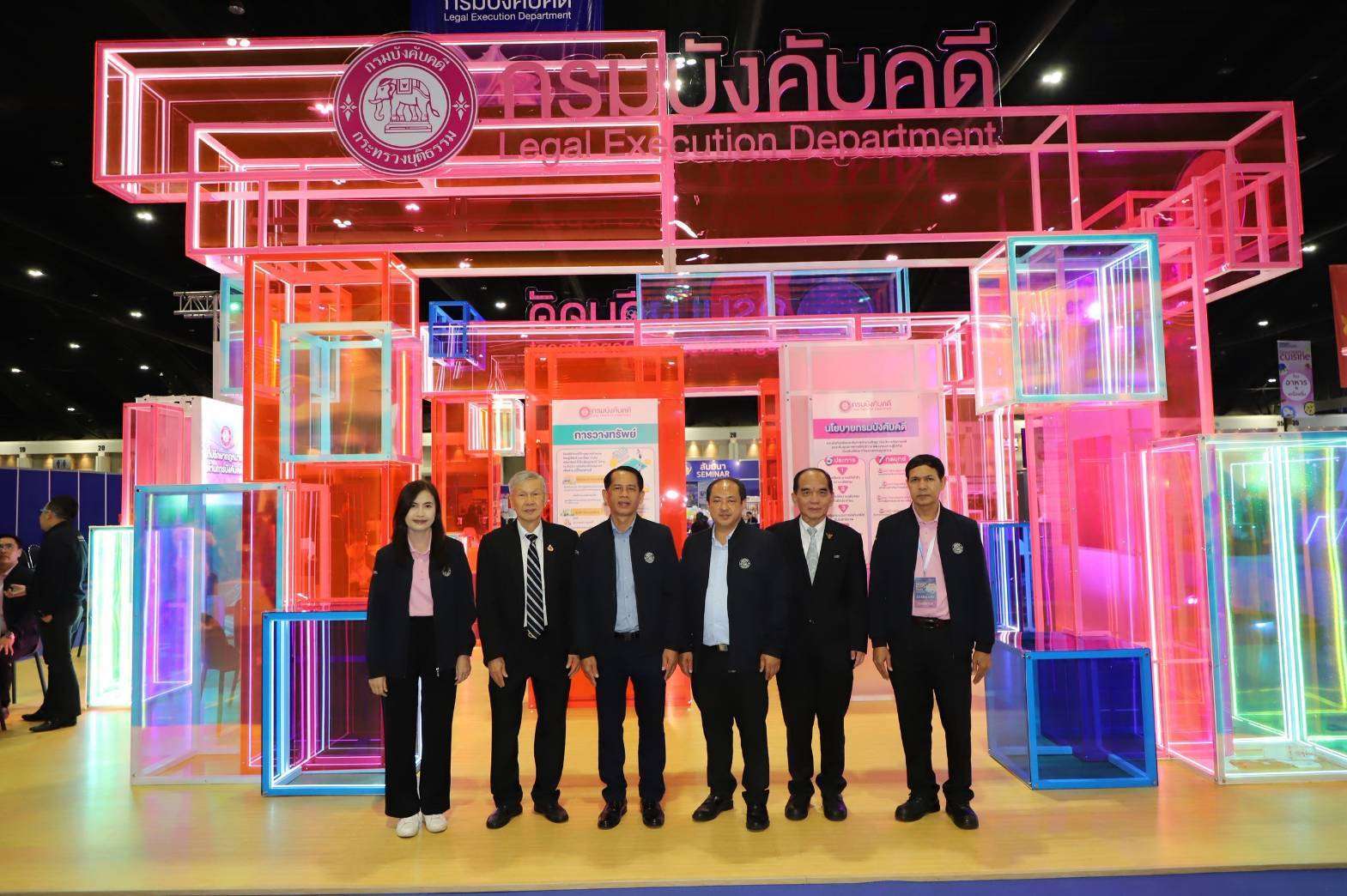 ภายในงานมีการจัดบูธนิทรรศการให้บริการแก่ประชาชน ให้คำปรึกษากฎหมายด้านการบังคับคดี การไกล่เกลี่ยข้อพิพาทช่วยเหลือลูกหนี้หลังศาลมีคำพิพากษา ทั้งนี้ได้ร่วมกับสถาบันการเงิน จำนวน 12 แห่ง ประกอบด้วย 1. ธนาคารกรุงไทย จำกัด (มหาชน) 2. ธนาคารอิสลามแห่งประเทศไทย 3. บริษัท อยุธยา แคปปิตอล เซอร์วิสเซส จำกัด 4. บริษัท บัตรกรุงศรีอยุธยา จำกัด 5. บริษัท เจเนอรัล คาร์ด เซอร์วิสเซส จำกัด 6. บริษัท โลตัส มันนี่เซอร์วิสเซส จำกัด 7. บริษัท เจเอ็มที เน็ทเวอร์ค เซอร์วิสเซส จำกัด (มหาชน) 8. บริษัท บริหารสินทรัพย์ เจ จำกัด 9. บริษัท บริหารสินทรัพย์สุขุมวิท จำกัด 10. บริษัท บริหารสินทรัพย์ เจเค จำกัด 11. บริษัท อิออน ธนสินทรัพย์ (ไทยแลนด์) จำกัด (มหาชน) และ 12. บริษัท อยุธยา แคปปิตอล ออโต้ ลีส จำกัด (มหาชน)