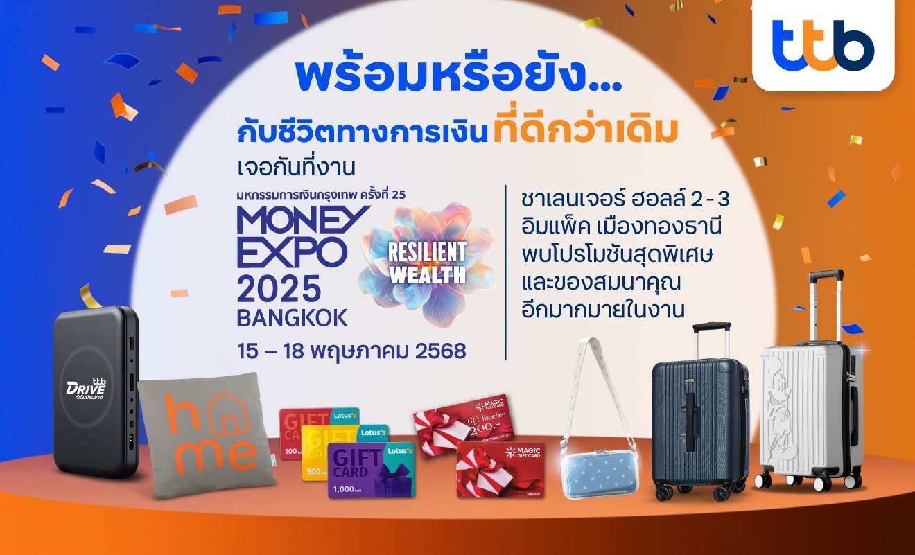ทีเอ็มบีธนชาต หรือ ทีทีบี ตอกย้ำการเป็นธนาคารที่มุ่งช่วยให้คนไทยมีชีวิตทางการเงินที่ดีขึ้นอย่างยั่งยืน ด้วยโซลูชันที่ช่วยปลดหนี้ได้เร็วขึ้น พร้อมยกระดับประสบการณ์ใช้จ่ายในชีวิตทุกวันให้อัศจรรย์ได้จริง เพื่อให้ทุกคนสนุกพร้อมกับการมีชีวิตทางการเงินที่ดีขึ้น ด้วยผลิตภัณฑ์และบริการที่ตอบโจทย์ทุกความต้องการ กับโปรโมชันสุดพิเศษในงานมหกรรมการเงินกรุงเทพ ครั้งที่ 25 หรือ มันนี่ เอ็กซ์โป 2025