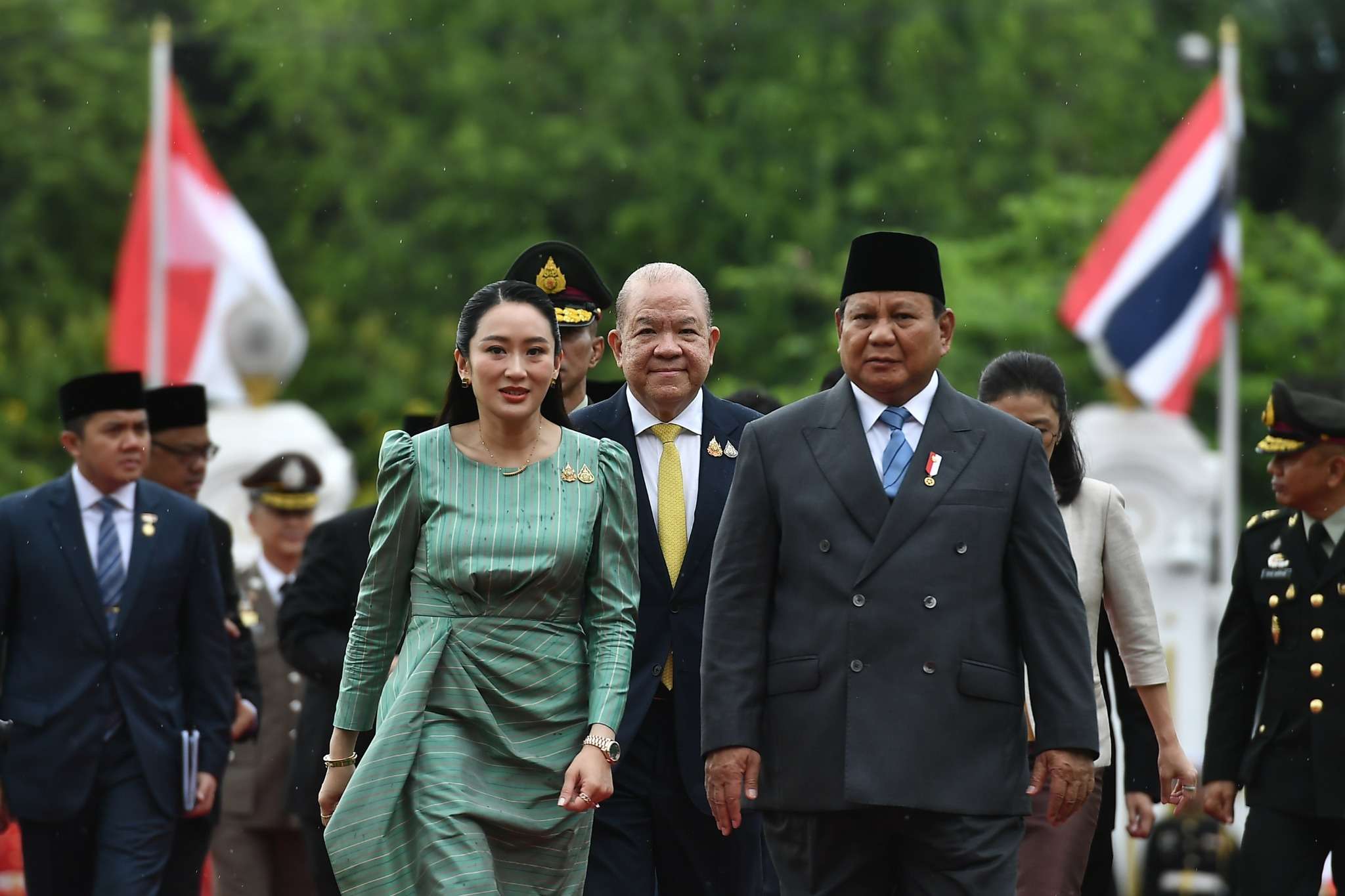 ที่ทำเนียบรัฐบาล วันที่ 19 พฤษภาคม นางสาวแพทองธาร ชินวัตร นายกรัฐมนตรี ให้การต้อนรับ นายปราโบโว ซูบียันโต (H.E. Mr. Prabowo Subianto) ประธานาธิบดีแห่งสาธารณรัฐอินโดนีเซีย ในโอกาสการเยือนประเทศไทยอย่างเป็นทางการในฐานะแขกของรัฐบาล โดยได้ร่วมตรวจแถวกองทหารเกียรติยศ ณ บริเวณสนามหญ้าหน้าตึกไทยคู่ฟ้า ก่อนจะไปลงนามในสมุดเยี่ยมและชมของที่ระลึกที่ทั้งสองฝ่ายมอบให้แก่กัน จากนั้น ผู้นำทั้งสองร่วมหารือทวิภาคีเต็มคณะ ภายใต้กลไกหารือระดับผู้นำ (Leaders’ Consultation) ครั้งที่ 1