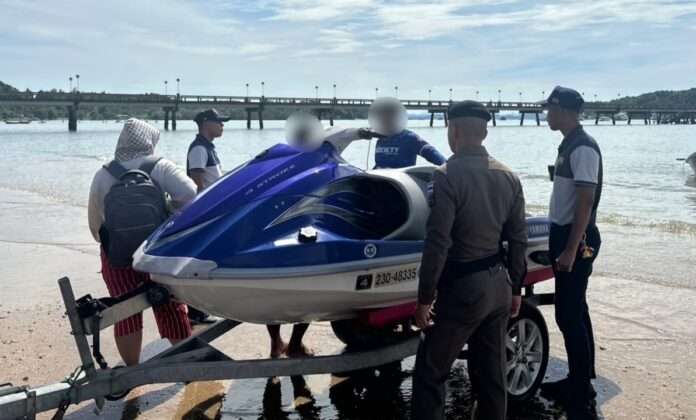 พร้อมตรวจยึดของกลาง 1.เรือเจ็ทสกี ไม่มีชื่อ ไม่มีหมายเลขทะเบียน ตัวเรือสีฟ้าขาว-เบาะสีฟ้า จำนวน 1 ลำ2.เรือเจ็ทสกี ไม่มีชื่อ ไม่มีหมายเลขทะเบียน ตัวเรือสีฟ้าขาว-เบาะสีฟ้า จำนวน 1 ลำ 3.เรือเจ็ทสกี ไม่มีชื่อ ไม่มีหมายเลขทะเบียน ตัวเรือสีฟ้าขาว-เบาะสีดำ จำนวน 1 ลำ 4.เรือเจ็ทสกี ไม่มีชื่อ ไม่มีหมายเลขทะเบียน ตัวเรือสีฟ้าขาว-เบาะสีน้ำเงินฟ้า จำนวน 1 ลำ