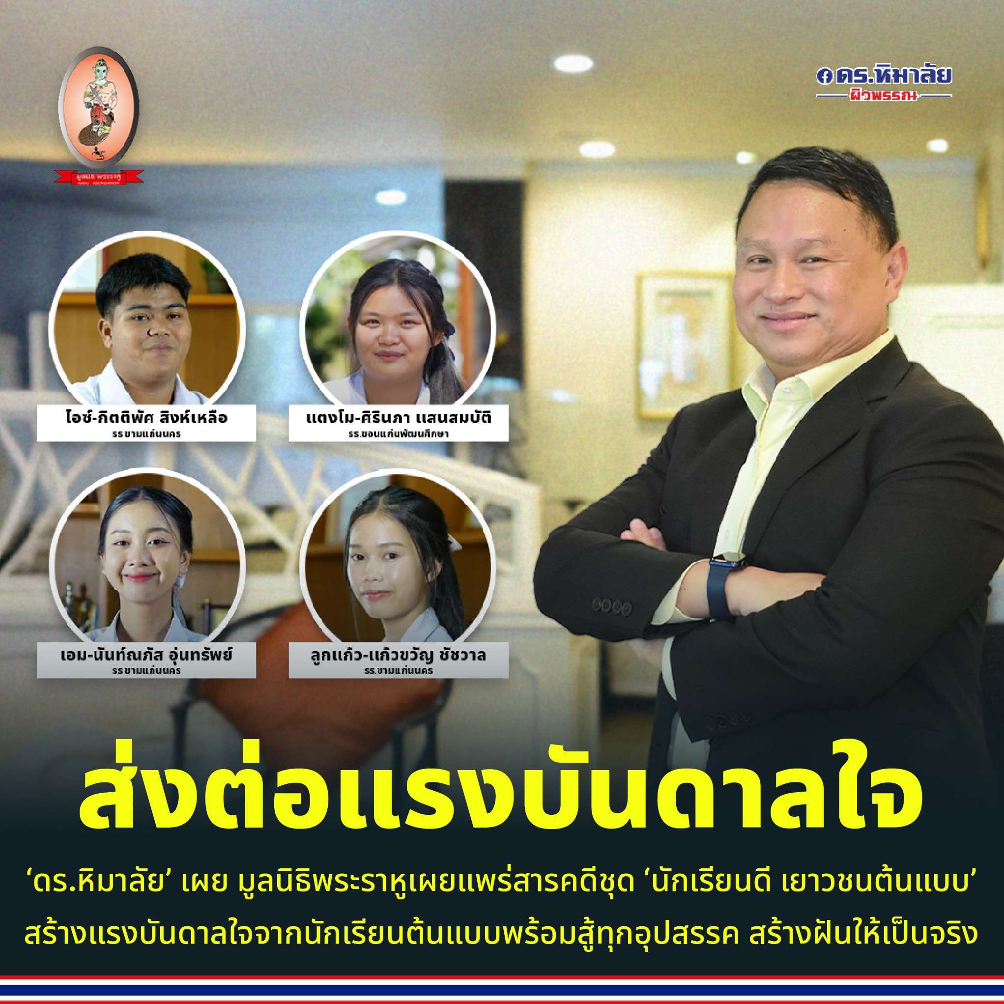 กรุงเทพฯ – วันที่ 22 พฤษภาคม  “เสธ.หิ” หิมาลัย ผิวพรรณ ประธานที่ปรึกษามูลนิธิพระราหู เปิดเผยว่า ตามที่มูลนิธิพระราหู โดย ดร.หิมาลัย ผิวพรรณ ประธานที่ปรึกษามูลนิธิพระราหู และพล.ต.ท.ไตรรงค์ ผิวพรรณ ได้ดำเนินการโครงการนักเรียนดี เยาวชนต้นแบบ โดยมีวัตถุประสงค์เพื่อเป็นแบบอย่างของนักเรียนและเยาวชนที่มีความรักชาติ ศาสนา และสถาบันพระมหากษัตริย์ รวมถึงมีความประพฤติที่เป็นแบบอย่างที่ดีแก่นักเรียนและเยาวชนคนอื่น ๆ