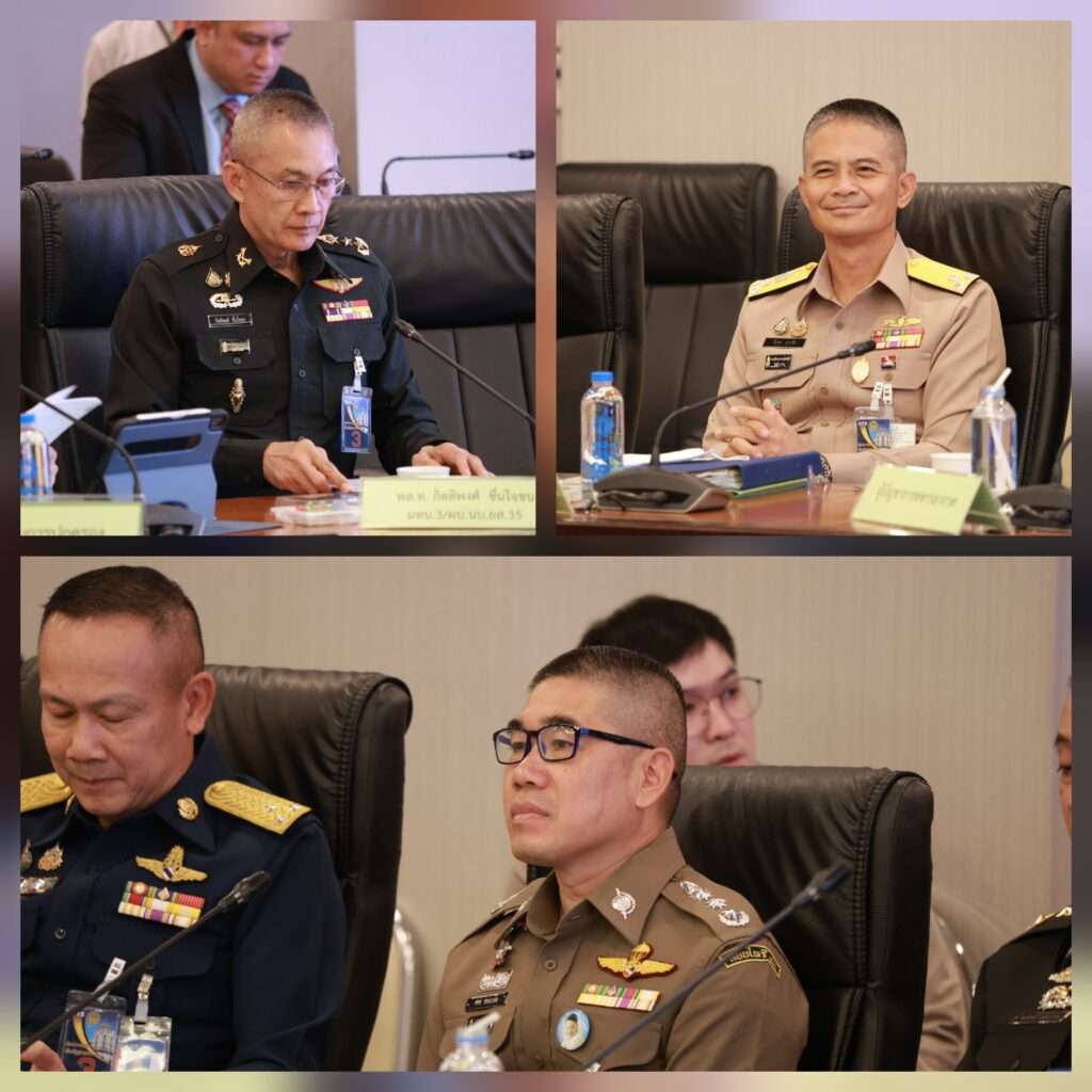 พลตำรวจโท สันติ ชัยนิรามัย ผู้บัญชาการตำรวจปราบปรามยาเสพติด พลเรือโท วีรุดม ม่วงจีน รองเสนาธิการทหารเรือ พลอากาศโท ประภาส สอนใจดี รองเสนาธิการ ทหารอากาศ และพลตรี เทวินทร์ เทศนธรรม รองเจ้ากรมยุทธการทหารบก ณ ห้องประชุม 301 ชั้น 3 ตึกบัญชาการ 1 ทำเนียบรัฐบาล