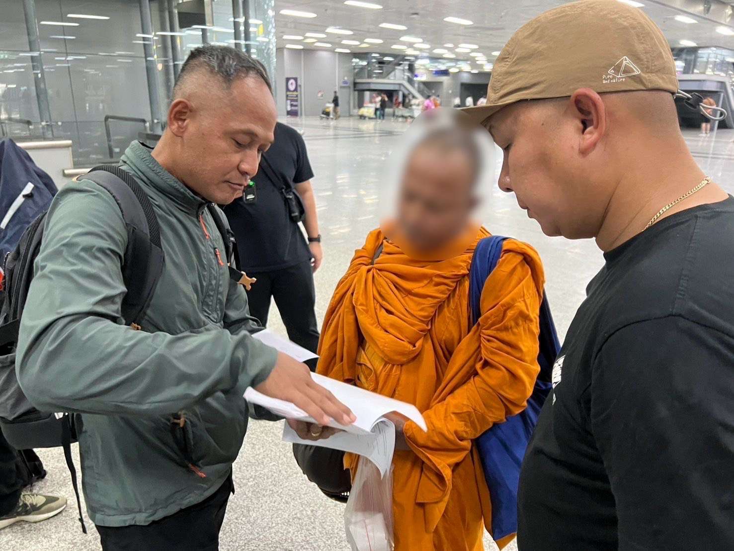 ต่อมาเจ้าหน้าที่ตำรวจชุดจับกุมได้รับแจ้งว่า นายภานุมาศฯ ผู้ต้องหาตามหมายจับ จำวัดอยู่ที่จังหวัดสุราษฎร์ธานี กำลังโดยสารรถไฟ เพื่อเดินทางมาที่ กรุงเทพมหานครและจะมาต่อรถไฟ ย้ายมาประจำวัดอยู่ที่จังหวัดระยอง ซึ่งก่อนหน้านี้เคยย้ายวัดมาแล้วหนึ่งครั้งจากจังหวัดศรีสะเกษ เจ้าหน้าที่ตำรวจชุดจับกุมจึงเดินทางไปตรวจสอบพบบุคคลดังกล่าว บริเวณสถานีรถไฟฯจึงได้แสดงหมายจับให้ นายภานุมาศฯ ได้ดูหมายจับแล้ว รับว่าเป็นบุคคลตามหมายจับจริงและยังไม่เคยถูกจับกุมตามหมายจับนี้มาก่อน