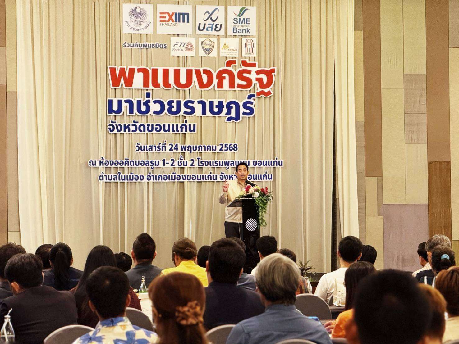 โรงแรมพูลแมน ขอนแก่น – วันที่ 24 พ.ค. นายเผ่าภูมิ โรจนสกุล รมช.คลัง เปิดเผยว่า กระทรวงการคลังต้องการเห็นการที่สถาบันการเงินเฉพาะกิจเข้าหาประชาชนให้มากขึ้น ไม่อยากเห็นการทำงานแบบตั้งรับ รอประชาชนเข้ามาหา เข้ามาปรึกษา เข้ามาขอสินเชื่อ สถาบันการเงินรัฐต้องเป็นฝ่ายวิ่งเข้าหาประชาชน วิ่งเข้าช่วยประชาชน จึงได้พาสถาบันการเงินเฉพาะกิจ 3 แห่ง ได้แก่ ธนาคารเพื่อการส่งออกและนำเข้าแห่งประเทศไทย (ธสน.หรือ EXIM) ธนาคารพัฒนาวิสาหกิจขนาดกลาง และขนาดย่อมแห่งประเทศไทย (ธพว. หรือ SME-D Bank) และบรรษัทประกันสินเชื่ออุตสาหกรรมขนาดย่อม (บสย.) มาช่วยประชาชน ช่วยให้ประชาชนเข้าถึงแหล่งเงินทุน ภายใต้งาน “พาแบงก์รัฐ มาช่วยราษฎร์” ขอนแก่น โดยมีวัตถุประสงค์เพื่อให้ผู้ประกอบการ SMEs ในจังหวัดขอนแก่นและพื้นที่ใกล้เคียงสามารถเข้าถึงสินเชื่อและบริการทางการเงินต่าง ๆ ของทางสถาบันการเงินเฉพาะกิจทั้ง 3 แห่ง