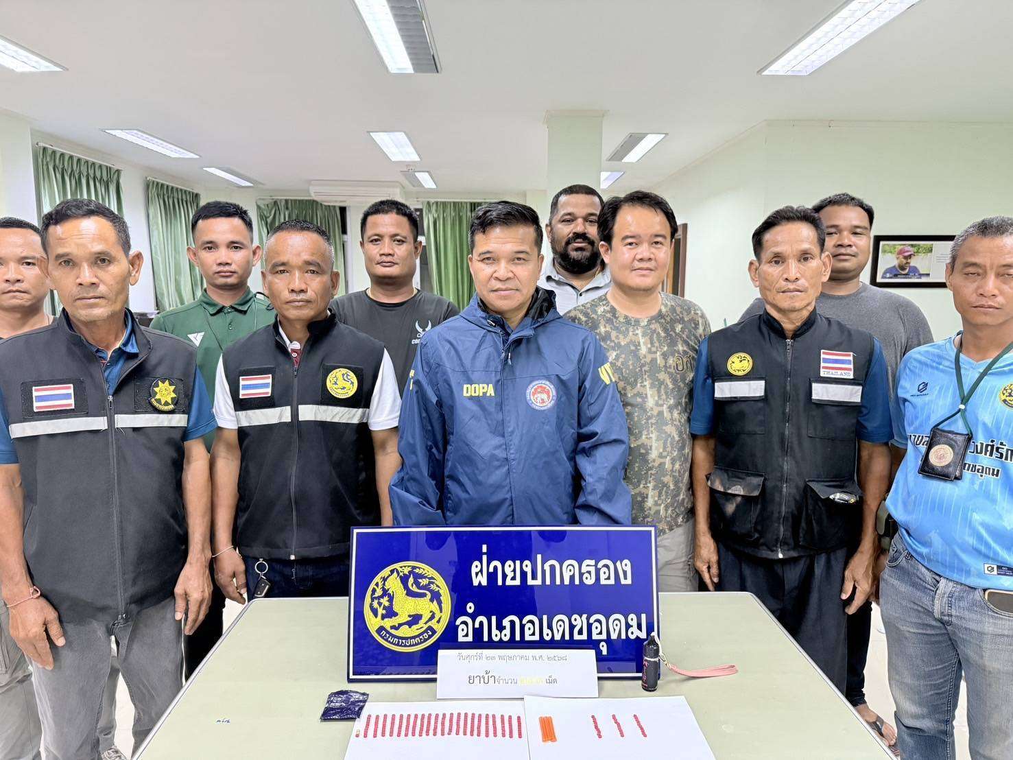อุบลราชธานี – เจ้าหน้าที่ฝ่ายปกครองอำเภอเดชอุดม จับกุม “เอกน้อย โรงฆ่าสัตว์” พร้อมเครือข่ายค้ายาเสพติด ยึดยาบ้า 243 เม็ด พร้อมส่งตรวจปัสสาวะพบสารเสพติด ทั้งหมดถูกควบคุมตัวส่งดำเนินคดีตามกฎหมาย