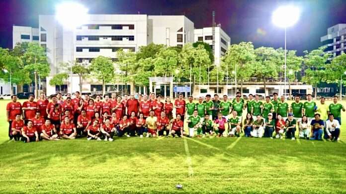 กรุงเทพฯ – สนามกีฬากองบัญชาการกองทัพไทย กลายเป็นเวทีแห่งความอบอุ่นและสามัคคี เมื่อหลักสูตรเสริมสร้างสังคมสันติสุข (4ส.) สถาบันพระปกเกล้า จัดการแข่งขันฟุตบอลประเพณีสุดคึกคัก “รุ่นพี่สู่รุ่นน้อง” ระหว่างทีม “เสือป่า” ปะทะทีม “สถาบันพระปกเกล้า” รับน้อง 4ส. รุ่นที่ 15 ท่ามกลางสายฝนที่โปรยปราย แต่ไม่อาจพรากพลังใจที่หลอมรวมเป็นหนึ่งเดียวจากทุกรุ่น