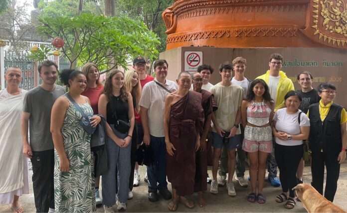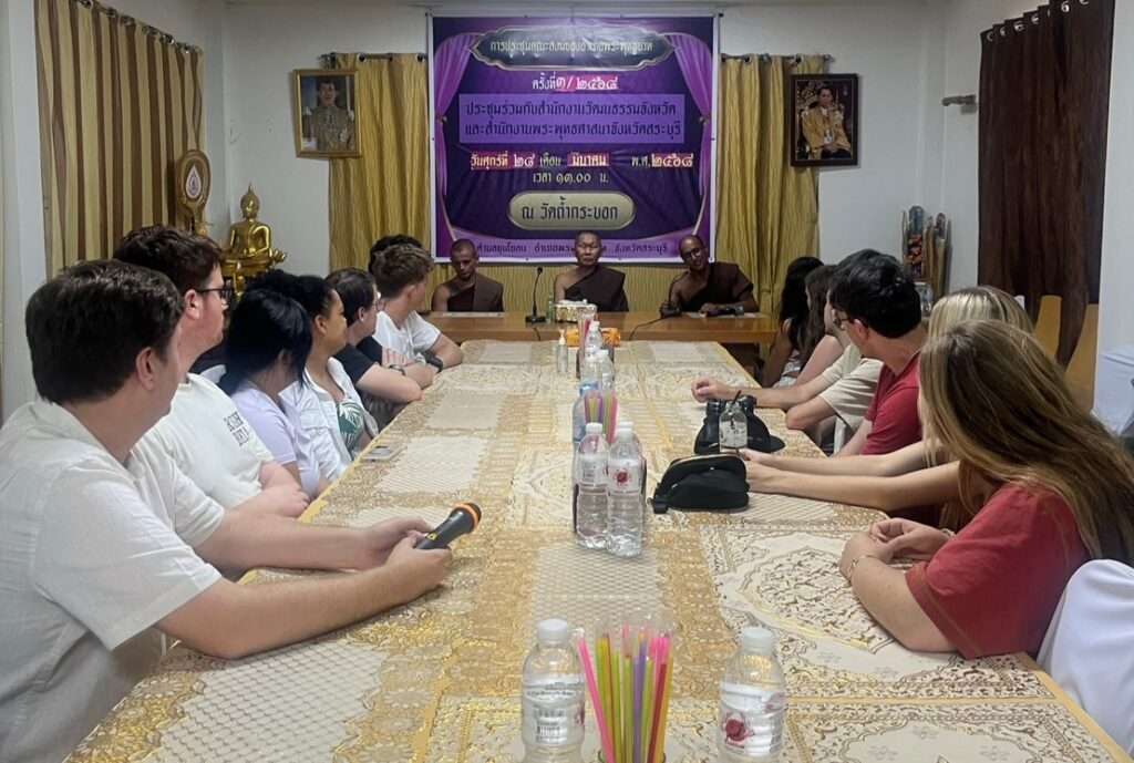 วัดถ้ำกระบอก – วันที่ 26 พฤษภาคม พระอาจารย์วิจิตร อคฺคจิตโต รองเจ้าอาวาส และประธานชมรมช่วยกันคนละนิดพิชิตยาเสพติด ร่วมกับ องค์กรไทยแลนด์เอ็กซ์พีเรียนเซล ซึ่งเป็นองค์กรที่รับนักศึกษาและคณาจารย์จากต่างประเทศเข้ามาศึกษาดูงานในประเทศไทย ในครั้งนี้นำนักศึกษาชาวต่างประเทศหลายประเทศ จากมหาวิทยาลัย Furman University ประเทศสหรัฐอเมริกา เข้าเยี่ยมชมฟังบรรยาย ขั้นตอนการฟื้นฟูสมรรถภาพผู้ติดยาเสพติดและรับฟังประวัติความเป็นมา ของวัดถ้ำกระบอก พร้อมแนะนำชมการท่องเที่ยวเชิงพุทธ ณ วัดถ้ำกระบอก ตำบลขุนโขลน อำเภอพระพุทธบาท จังหวัดสระบุรี