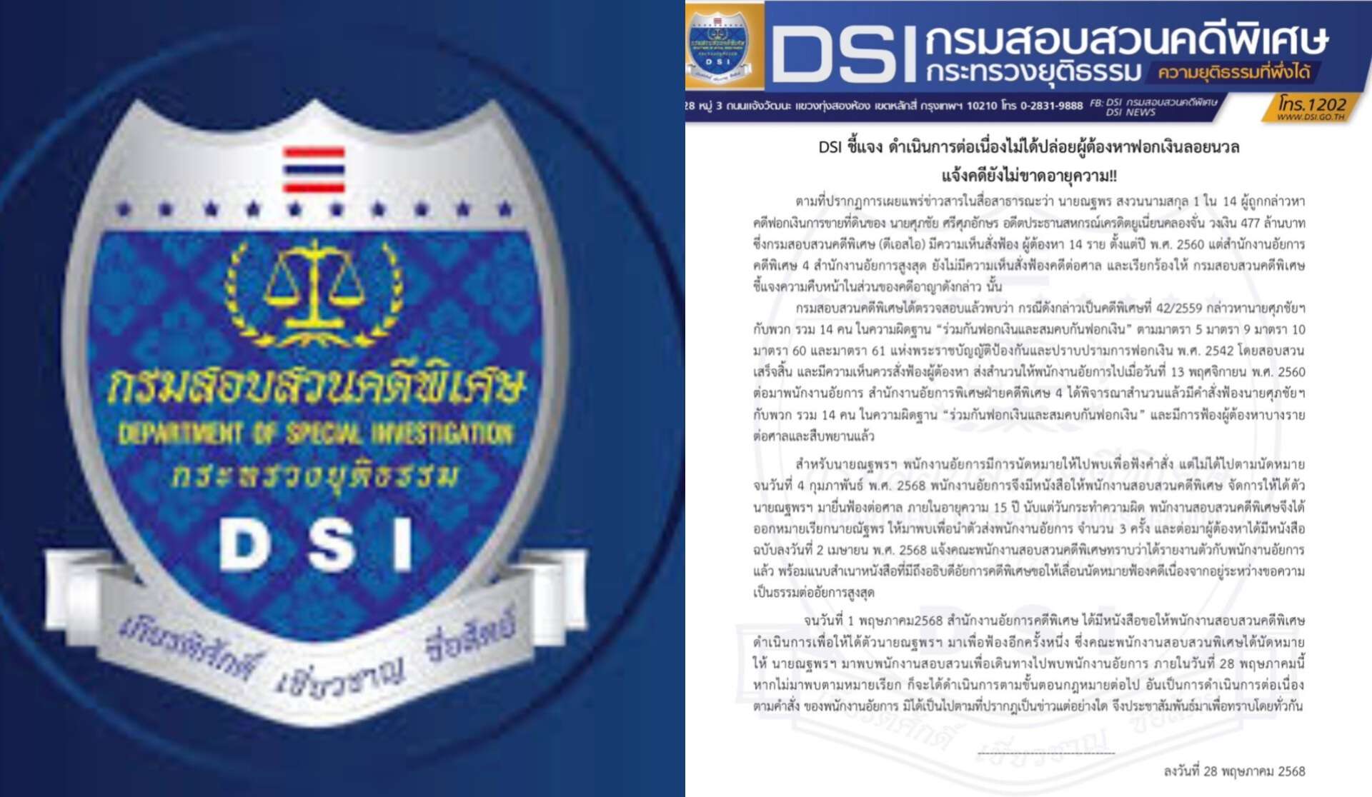 จนวันที่ 1 พฤษภาคม2568 สำนักงานอัยการคดีพิเศษ ได้มีหนังสือขอให้พนักงานสอบสวนคดีพิเศษดำเนินการเพื่อให้ได้ตัวนายณฐพรฯ มาเพื่อฟ้องอีกครั้งหนึ่ง ซึ่งคณะพนักงานสอบสวนพิเศษได้นัดหมายให้ นายณฐพรฯ มาพบพนักงานสอบสวนเพื่อเดินทางไปพบพนักงานอัยการ ภายในวันที่ 28 พฤษภาคมนี้ หากไม่มาพบตามหมายเรียก ก็จะได้ดำเนินการตามขั้นตอนกฎหมายต่อไป อันเป็นการดำเนินการต่อเนื่อง