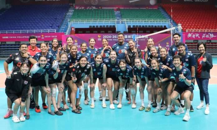 วันที่ 2 ของทีมนักตบลูกยางสาวไทย ชุดเนชันส์ลีก 2025 ที่กรุงปักกิ่ง หลังทานมื้อทานจากการรับรองโดย สถานเอกอัครราชทูต ณ กรุงปักกิ่ง ได้ลงซ้อมเต็มรูปแบบเพื่อทดสอบระบบรับ-ตบ Key Player ที่ปกติแล้วจะทดสอง 2 ครั้งต่อสัปดาห์ เพื่อเตรียมความพร้อมก่อนประเดิมนัดแรกศึกเนชันส์ ลีก กับโปแลนด์ ในวันที่ 4 มิ.ย. รวมใช้เวลา 2 ชั่วโมงเต็ม หลังการฝึกซ้อม เฝิงคุณ ภรรยาโค้ชอ๊อตในฐานะผู้จัดการทีมชาติไทยกล่าวความรู้สึกดีใจ และตื่นเต้น ที่ได้ทำหน้าที่ร่วมกับทีมชาติไทยเป็นครั้งแรก ขอให้ทุกคนโชคดี
