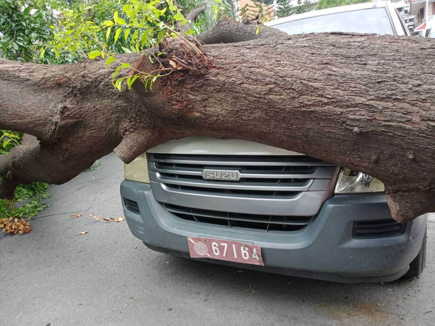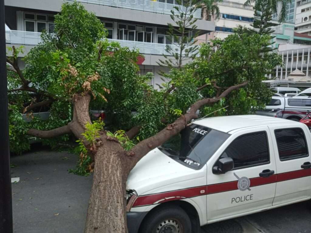ตะเคียนยักษ์อายุกว่า 50 ปีภาย ในสำนักงานตำรวจแห่งชาติ ล้มทับรถทรัพย์สินราชการเสียหาย สาเหตุพายุฝนฟ้าคะนองถล่มกรุง ซ้ำซ้อนฝ้าเพดานถล่ม