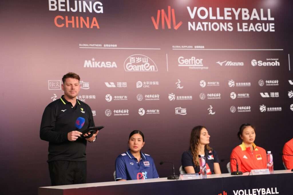 วันที่ 3 มิถุนายน 2568 – บรรยากาศก่อนการแข่งขันวอลเลย์บอลหญิงเนชันส์ลีก 2025 (VNL 2025) เข้มข้นขึ้นเรื่อย ๆ ล่าสุด “ชมพู่” พรพรรณ เกิดปราชญ์ มือเซตคนสำคัญของทีมชาติไทย ได้ให้สัมภาษณ์ในการแถลงข่าวก่อนเกมสำคัญที่ไทยจะพบกับทีมชาติโปแลนด์