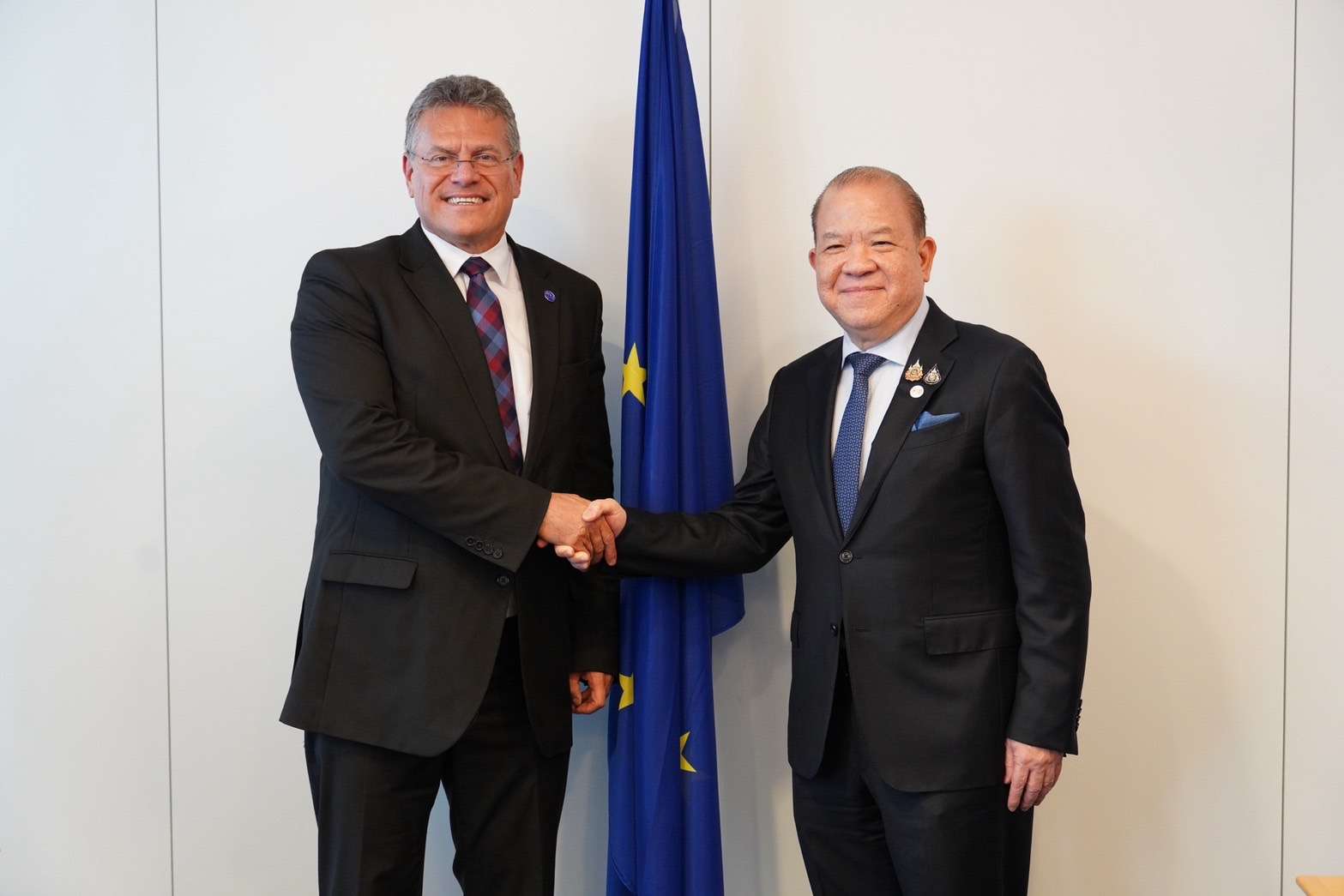 ประเทศฝรั่งเศส วันที่ 5 มิ.ย. นายพิชัย นริพทะพันธุ์ รัฐมนตรีว่าการกระทรวงพาณิชย์ เปิดเผยว่าเมื่อวันที่ 4 ที่ผ่านมาในช่วงการประชุม OECD ระดับรัฐมนตรี ณ กรุงปารีส ตนได้พบหารือกับนายมารอส เซฟโควิช (H.E. Mr. Maroš Šefčovič) กรรมาธิการยุโรปด้านการค้าและความมั่นคงทางเศรษฐกิจ ความสัมพันธ์ระหว่างองค์กรและความโปร่งใส เพื่อติดตามความคืบหน้าการเจรจาความตกลงการค้าเสรี (FTA) ไทย-สหภาพยุโรป (EU) และผลักดันให้สรุปผลได้ภายในปีนี้ ตามนโยบายของรัฐบาล นางสาวแพทองธาร ชินวัตร