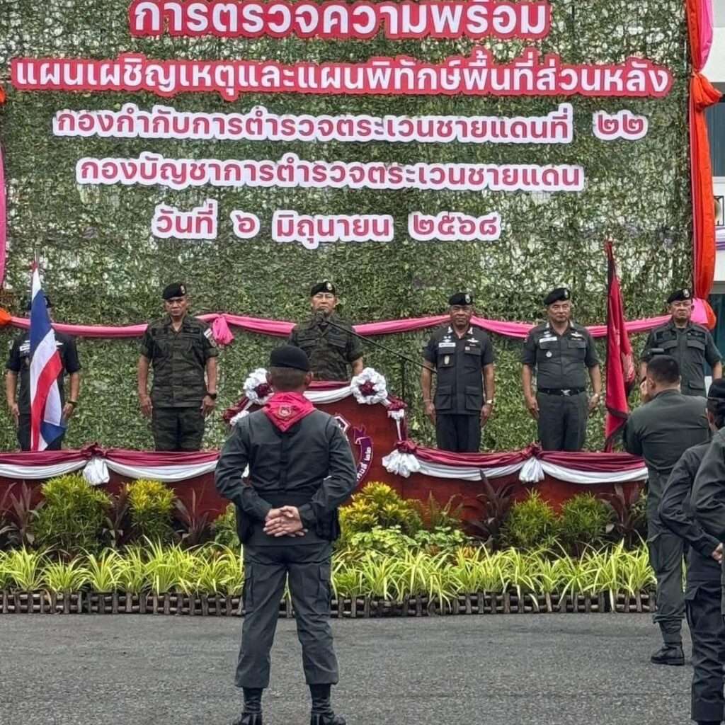 เมื่อวันที่ 6 มิถุนายน 2568 (เวลา 08.30 น.)พล.ต.อ.กิตติ์รัฐ พันธุ์เพ็ชร์ ผู้บัญชาการตำรวจแห่งชาติ เดินทางไปยังประชุมติดตามสถานการณ์และตรวจเยี่ยมความพร้อมกำลังพลในพื้นที่ ณ ห้องประชุมสุขวิมล กองกำกับการตำรวจตระเวนชายแดนที่ 22 กองบังคับการตำรวจตระเวนชายแดนภาค 2 กองบัญชาการตำรวจตระเวนชายแดน ต.ในเมือง อ.เมือง จ.อุบลราชธานี โดยมี พล.ต.ท.นิตินัย หลังยาหน่าย ผู้บัญชาการตำรวจตระเวนชายแดน , พล.ต.ท.วัฒนา ยี่จีน ผู้บัญชาการตำรวจภูธรภาค 3 , พล.ต.ต.รุ่งโรจน์ ฐากูรปุณยสิริ รองผู้บัญชาการตำรวจตระเวนชายแดน , พล.ต.ต.วสันต์ เตชะอัครเกษม รองผู้บัญชาการตำรวจนครบาล , พล.ต.ต.ประสงค์ เรืองเดช รองจเรตำรวจ รักษาราชการแทนรองผู้บัญชาการตำรวจภูธรภาค 3 พร้อมด้วยผู้บังคับการ และผู้กำกับการ ในพื้นที่ และผู้เกี่ยวข้อง ร่วมประชุม