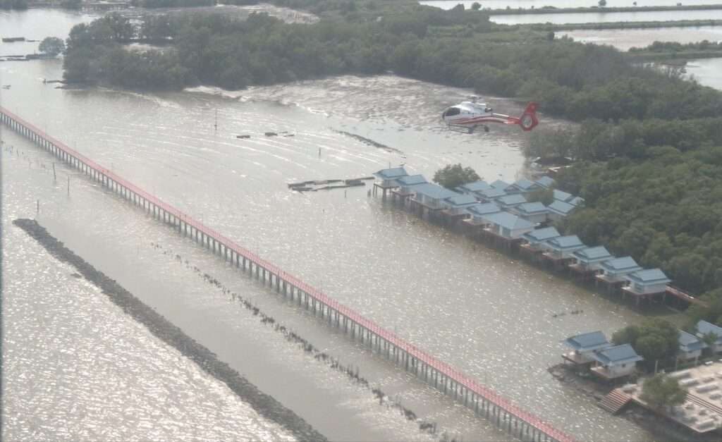 อ่าวไทย, วันที่ 6 มิถุนายน นายพิรุณ สัยยะสิทธิ์พานิช อธิบดีกรมการเปลี่ยนแปลงสภาพภูมิอากาศและสิ่งแวดล้อม (กรมโลกร้อน) รายงานสถานการณ์ปัญหาการกัดเซาะชายฝั่งและการเพิ่มขึ้นของระดับน้ำทะเล เนื่องจากการเปลี่ยนแปลงสภาพภูมิอากาศบริเวณพื้นที่อ่าวไทยตอนบน ให้ นายประเสริฐ จันทรรวงทอง รองนายกรัฐมนตรี รับทราบ ก่อนที่รองนายกฯ จะ ขึ้นเฮลิคอปเตอร์เพื่อสำรวจภาพรวมของสถานการ์ จากมุมสูงโดยเฉพาะบริเวณวัดขุนสมุทรจีน อ.พระสมุทรเจดีย์ ชายฝั่งคลองด่าน อ.บางบ่อ และหลักเขตกรุงเทพฯ เขตบางขุนเทียน ซึ่งได้รับผลกระทบค่อนข้างรุนแรง โดยมี ผู้บัญชาการโรงเรียนนายเรือ และ นายศุภมิตร ชิณศรี ผวจ.สมุทรปราการ ให้การต้อนรับ โดยนายประเสริฐเน้นย้ำความสำคัญของการเตรียมมาตรการรับมืออย่างเป็นระบบ พร้อมเร่งผลักดันแผนแม่บทป้องกันและปรับตัวในระยะยาว เพื่อรองรับผลกระทบที่อาจรุนแรงขึ้นในอนาคต