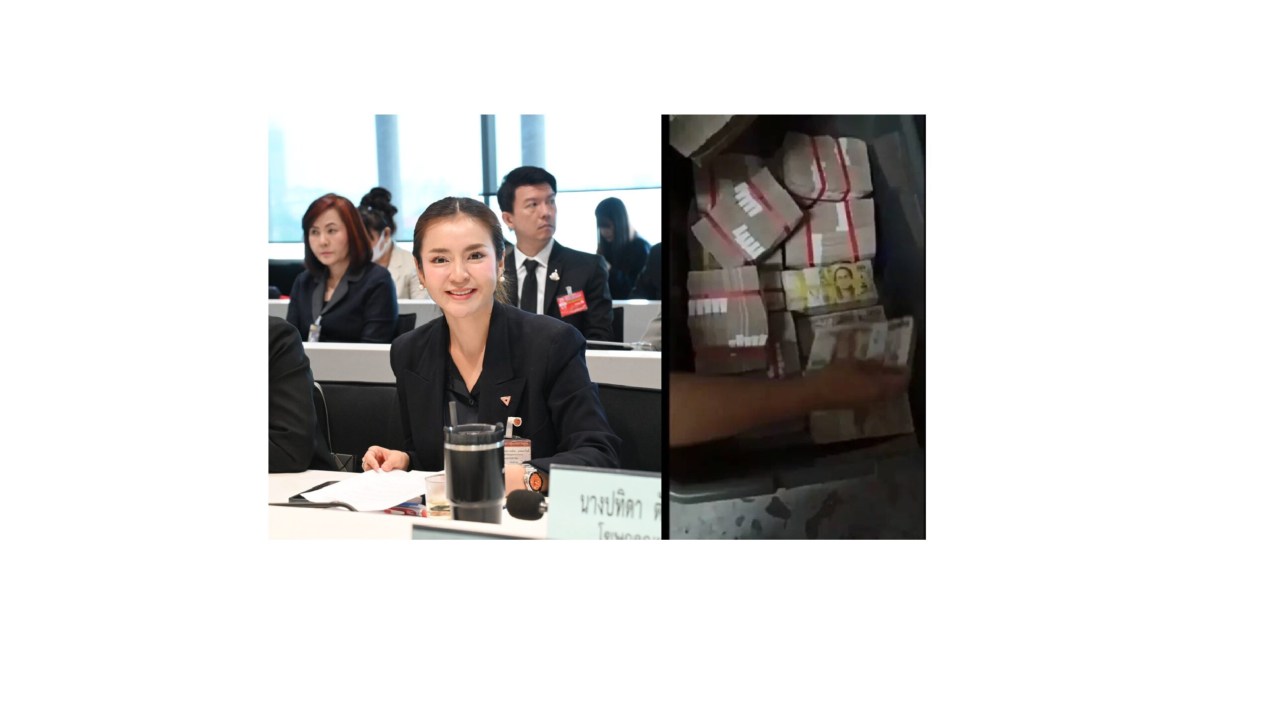 “แม้ว่าจะมีแต่พระเจ้าเท่านั้นที่รู้ว่าเงิน 12 ล้านในกล่องพลาสติกมหัศจรรย์นี้ จะเกี่ยวข้องกับการประมูลคลื่นของ กสทช. ที่ตั้งราคาประมูลไว้ต่ำเตี้ยเรี่ยดินจริงหรือไม่ แต่ข้อเท็จจริงคือเราพบเอกสารเกี่ยวกับ กสทช. จำนวนหนึ่งอยู่ข้างๆ กล่องเงิน จึงขอเชิญชวนประชาชนร่วมติดตามกรณีนี้กันต่อไป” สส.พรรคประชาชนกล่าว