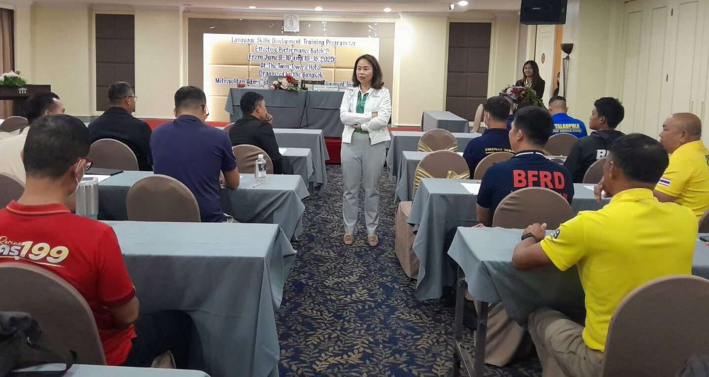 กรุงเทพมหานคร โดยสำนักงาน ก.ก. ได้รับอนุมัติให้ดำเนินโครงการพัฒนาทรัพยากรบุคคลของกรุงเทพมหานครให้พร้อมขับเคลื่อนยุทธศาสตร์และพันธกิจ หลักสูตรพัฒนาทักษะการใช้ภาษาในการปฏิบัติงาน เพื่อพัฒนาศักยภาพการใช้ภาษาต่างประเทศ ทั้งด้านการฟัง พูด อ่าน และเขียน ให้แก่ข้าราชการกรุงเทพมหานคร เพื่อให้มีความรู้ ความสามารถ มีทักษะความชำนาญในการสื่อสาร การอำนวยความสะดวก และการจัดหาข้อมูลอื่น ๆ ที่เป็นประโยชน์กับผู้รับบริการหรือผู้มาติดต่อราชการได้อย่างถูกต้องและมีประสิทธิภาพ โดยครั้งนี้ดำเนินการฝึกอบรม รุ่นที่ 2 กลุ่มภารกิจด้านการให้บริการป้องกันและบรรเทาสาธารณภัยแก่ประชาชน สำนักป้องกันและบรรเทาสาธารณภัย กรุงเทพมหานคร จำนวน 50 คน กำหนดฝึกอบรมระหว่างวันที่ 9-10 มิถุนายน และวันที่ 16-18 มิถุนายน 2568 ณ โรงแรมเดอะทวิน ทาวเวอร์ เขตปทุมวัน