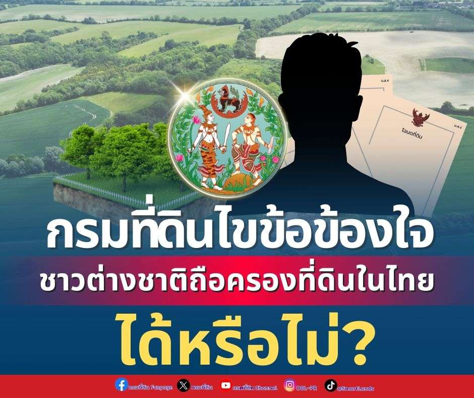 จากกรณีที่มีการแชร์คลิป TikTok เกี่ยวกับ “คนจีนถือครองที่ดินในประเทศไทย” อย่างแพร่หลาย กรมที่ดินขอชี้แจงว่า ข้อมูลในบางคลิปเป็น “คลิปตัดต่อเพื่อหลอกลวง” ซึ่งเกิดจากชาวจีนด้วยกันเอง ในขณะที่บางกรณีก็เป็นการถือครองตามสิทธิที่กฎหมายอนุญาตให้ชาวต่างชาติสามารถถือครองได้จริง