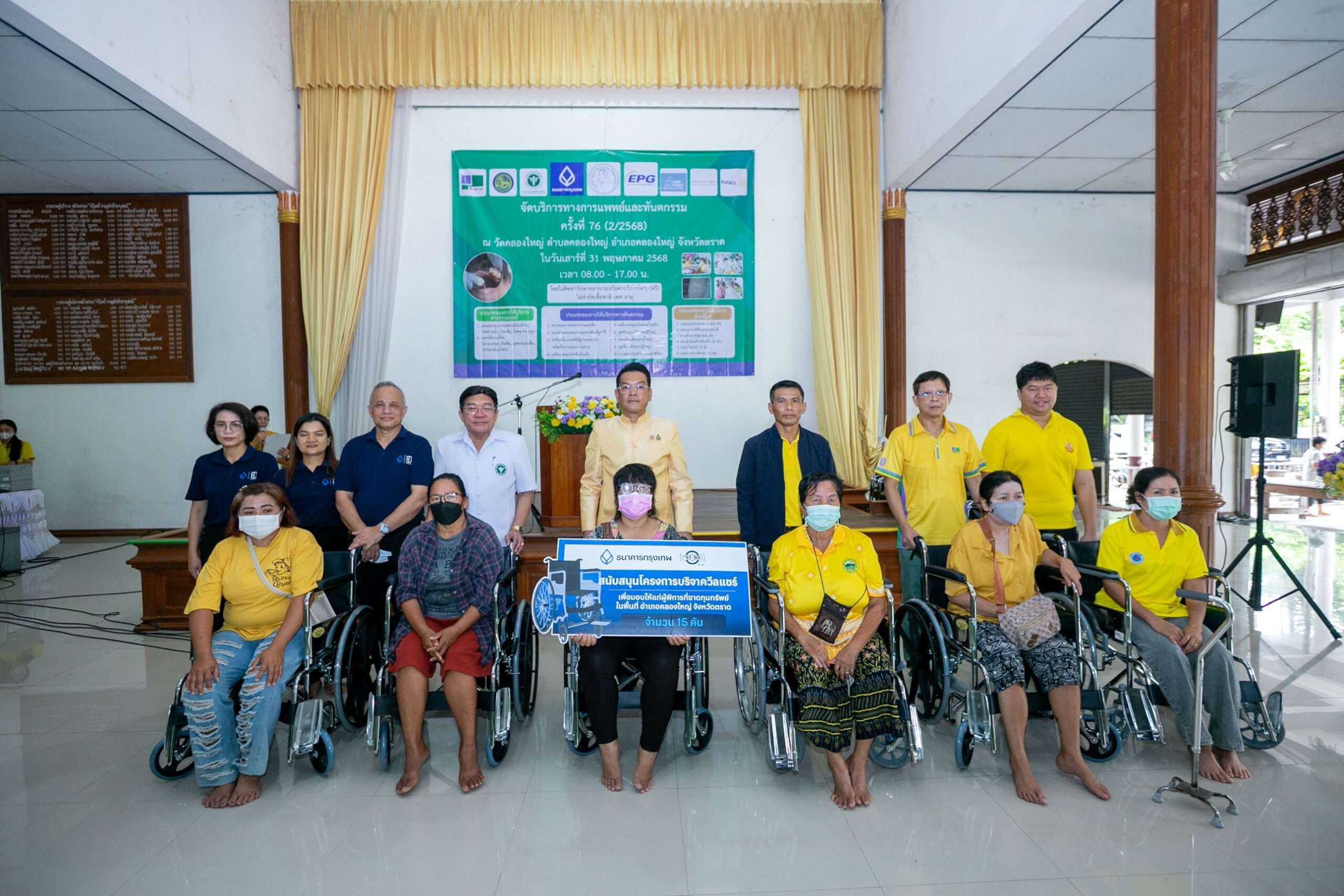 ธนาคารกรุงเทพ จำกัด (มหาชน) นำโดยนายสุวิทย์ อินทรเฉลิม เจ้าหน้าที่บริหารระดับ Vice President ฝ่ายการประชาสัมพันธ์ แพทย์หญิงศรีเพชร กาญจนกีรณา และ   นางระพีพร จันทร์คุ้ม  เจ้าหน้าที่บริหารระดับ Assistant Vice President บริการสุขภาพ นางสาวศรีสอางค์ เจริญวัย เจ้าหน้าที่บริหารระดับ Assistant Vice President ผู้จัดการสาขาถนนท่าแฉลบ จันทบุรี พร้อมด้วยทีมแพทย์ เภสัชกร พยาบาล คณะผู้บริหารและพนักงานธนาคาร ร่วมลงพื้นที่เป็นอาสาสมัคร พร้อมมอบเงินสนับสนุนจำนวน 100,000 บาท รถเข็นวีลแชร์ จำนวน 15 คัน  แว่นสายตายาว จำนวน 638 อัน และน้ำดื่มจำนวน 500 ขวด สนับสนุนการจัดกิจกรรมออกหน่วยแพทย์และทันตแพทย์เคลื่อนที่ ครั้งที่ 76  (ครั้งที่ 2 ของปี 2568)  ของมูลนิธิหน่วยแพทย์และทันตแพทย์เคลื่อนที่ (มพท.) โดยมี ทันตแพทย์ริม เกษสาคร ประธานมูลนิธิหน่วยแพทย์และทันตแพทย์เคลื่อนที่ เป็นผู้รับมอบ ณ วัดคลองใหญ่ ตำบลคลองใหญ่ อำเภอคลองใหญ่ จังหวัดตราด ซึ่งเป็นพื้นที่ติดชายแดน มีประชากรจำนวนมากอาศัยอยู่ และมีข้อจำกัดการเข้าถึงบริการทางการแพทย์  โดยในครั้งนี้มีประชาชนในพื้นที่เข้ารับบริการทางการแพทย์ครอบคลุมการตรวจรักษาโรคทางอายุรกรรม โรคผิวหนัง โรคหู คอ จมูก โรคตา โรคเด็ก นวดกดจุด ฝังเข็ม รวมถึงบริการทางทันตกรรม โดยไม่เสียค่ารักษาหรือบริการใดๆ รวม 1,406 ราย  โอกาสนี้นายดำรงค์ศักดิ์ ยอดทองดี รองผู้ว่าราชการจังหวัดตราด ให้เกียรติเป็นประธานในพิธีเปิดกิจกรรมฯ