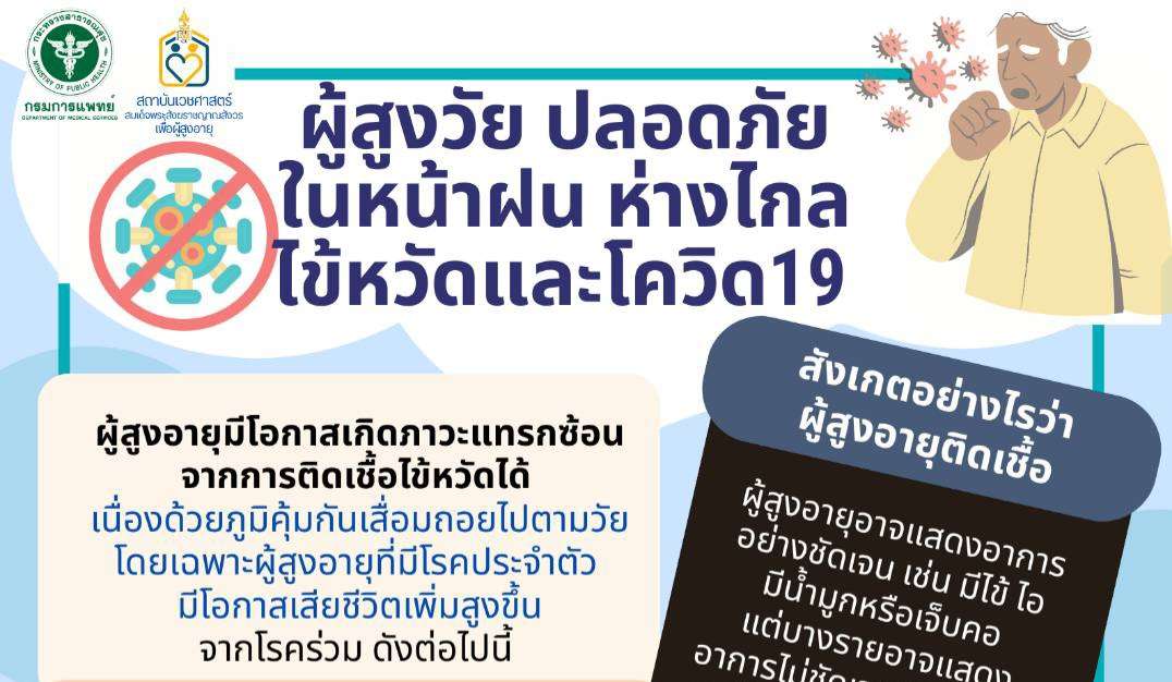 ผศ.พิเศษนายแพทย์ธนินทร์ เวชชาภินันท์ รองอธิบดีกรมการแพทย์ แสดงความห่วงใยต่อผู้สูงอายุ โดยชี้ว่าผู้สูงอายุมีโอกาสติดเชื้อได้ง่าย และมีความเสี่ยงสูงต่อภาวะแทรกซ้อน โดยเฉพาะในผู้ที่มีโรคประจำตัว เช่น โรคเบาหวาน ความดันโลหิตสูง โรคหัวใจ ไตเรื้อรัง ปอดเรื้อรัง มะเร็ง หรือมีภาวะอ้วน ซึ่งจะเพิ่มความเสี่ยงในการเสียชีวิตมากกว่าผู้ไม่มีโรคร่วม