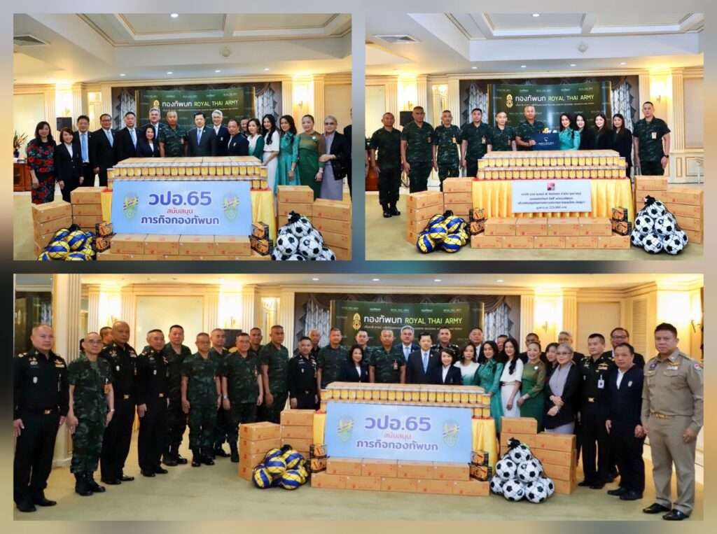 วันนี้ (12 มิ.ย.68) เวลา 09.00 น. ณ ห้องรับรอง 321 กองบัญชาการกองทัพบก พล.อ. พนา แคล้วปลอดทุกข์ ผู้บัญชาการทหารบก รับมอบเงินสนับสนุน จำนวน 1,000,000 บาท จากคณะนักศึกษาวิทยาลัยป้องกันราชอาณาจักร (วปอ.) รุ่นที่ 65 โดยมี คุณศุภชัย เจียรวรนนท์ ประธานคณะผู้บริหารเครือเจริญโภคภัณฑ์ จำกัด (มหาชน) ในฐานะประธาน วปอ.รุ่น ที่ 65 และบริษัท เอสแอนด์ พี ซินดิเคท จำกัด (มหาชน) มอบผลิตภัณฑ์ ของเอส แอนด์ พี มูลค่า 225,000 บาท ให้กับกองกำลังป้องกันชายแดนกองทัพบกที่ปฏิบัติหน้าที่บริเวณชายแดนไทย – กัมพูชา เพื่อส่งมอบกำลังใจให้กับทหารชายแดนที่ปฏิบัติหน้าที่อย่างเข้มแข็ง