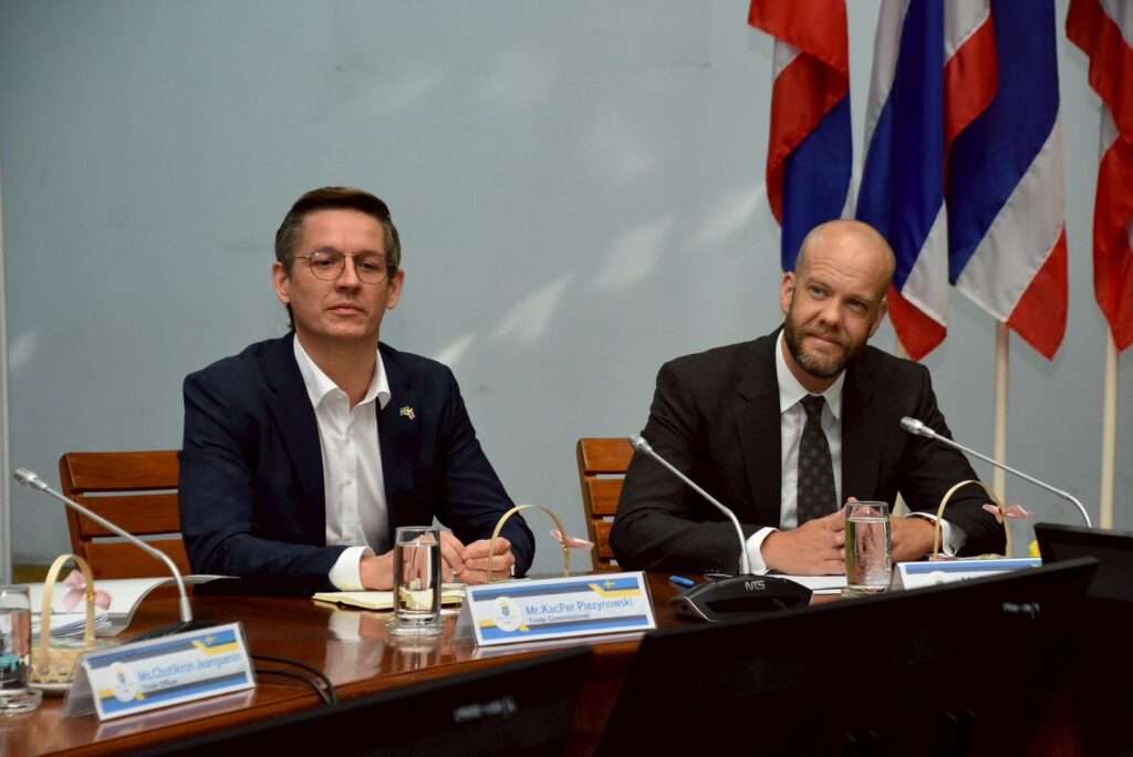 ประชุมและร่วมหารือกับ Mr. Per Linner รองหัวหน้าคณะผู้แทนทางการทูต และ Mr. Kacper Piezynowski กรรมาธิการการค้าสวีเดนประจำประเทศไทย พร้อมเจ้าหน้าที่ฯ โดยทั้งสองหน่วยงานมีข้อหารือในประเด็นความสนใจเกี่ยวกับการดำเนินงานด้านอุตสาหกรรมไม้ และทิศทางด้านการตลาดของผลิตภัณฑ์ไม้ในบริบทของ อ.อ.ป. และประเทศไทย รวมถึงความร่วมมือระหว่างประเทศไทยและประเทศสวีเดน ในบริบทการจัดการป่าไม้อย่างยั่งยืน