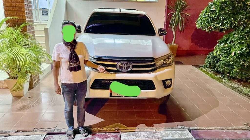 จากการสอบถามเบื้องต้น ผู้ต้องหาให้การว่า ได้รับการติดต่อจากหญิงชื่อ “นางก้อย” ผ่านแอปพลิเคชัน LINE (ชื่อผู้ใช้ ALONE) ให้ไปรับรถคันดังกล่าวจากห้างโลตัส สาขาเชียงยืน จ.มหาสารคาม และมีการโอนเงินจำนวน 5,000 บาทมายังบัญชีธนาคารออมสินของตนเอง โดยอ้างว่าเป็น “ค่าเสียเวลา” จากนั้นมีชายไม่ทราบชื่อโทรศัพท์มาสั่งให้นำรถไปส่งยังปั๊มน้ำมัน ปตท. ในจังหวัดแพร่