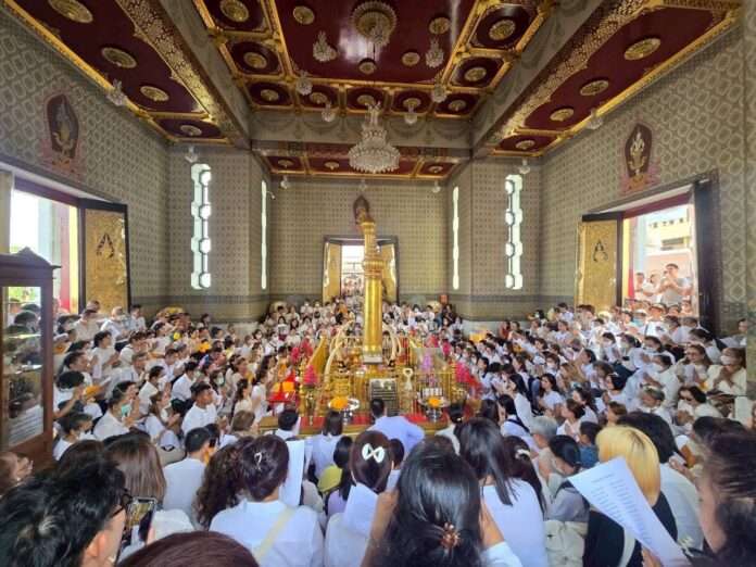 โดยมี อาจารย์วิจักษณ์ สองจันทร์ ประธานมูลนิธิพุทธภูมิธรรม เป็นผู้นำในพิธี บรรยากาศภายในงานเต็มไปด้วยพลังศรัทธาอันเปี่ยมล้น โดยมี พุทธศาสนิกชนหลายร้อยคน มาร่วมบุญกันอย่างเนืองแน่น เต็มพื้นที่ศาลหลักเมือง ตั้งใจร่วมกันถวายบุญเพื่อความเป็นสิริมงคลแก่ประเทศชาติ ต่อตนเองและครอบครัว รายชื่อร่วมหมื่นนำไปขึ้นโต๊ะบวงสรวงศักดิ์สิทธิ์
